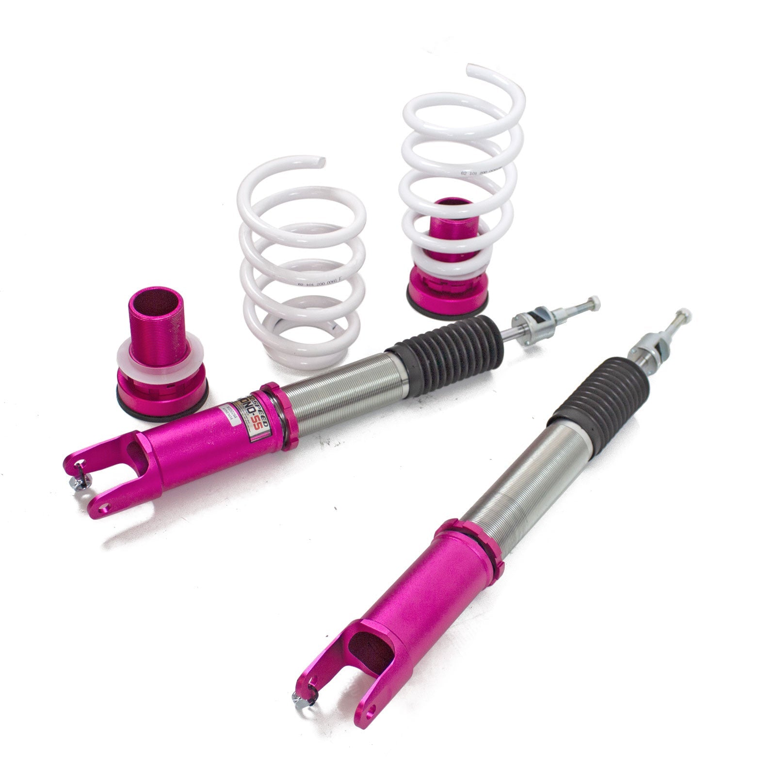GodSpeed MonoSS coilovers are great entry level single adjustable coilovers. GodSpeed starts with a race coilover and tones it down for the street to give you an extremely capable coilover that you can comfortably use every day.  GodSpeed uses some of the best and most exotic components on the market such as a carbon seamless steel 52mm tube with a high performance internal shock piston that provides fast and precise damper response.  GodSpeed coilover springs are cold-bent from high strength SAE9252 steel to be comfortable and high performance.