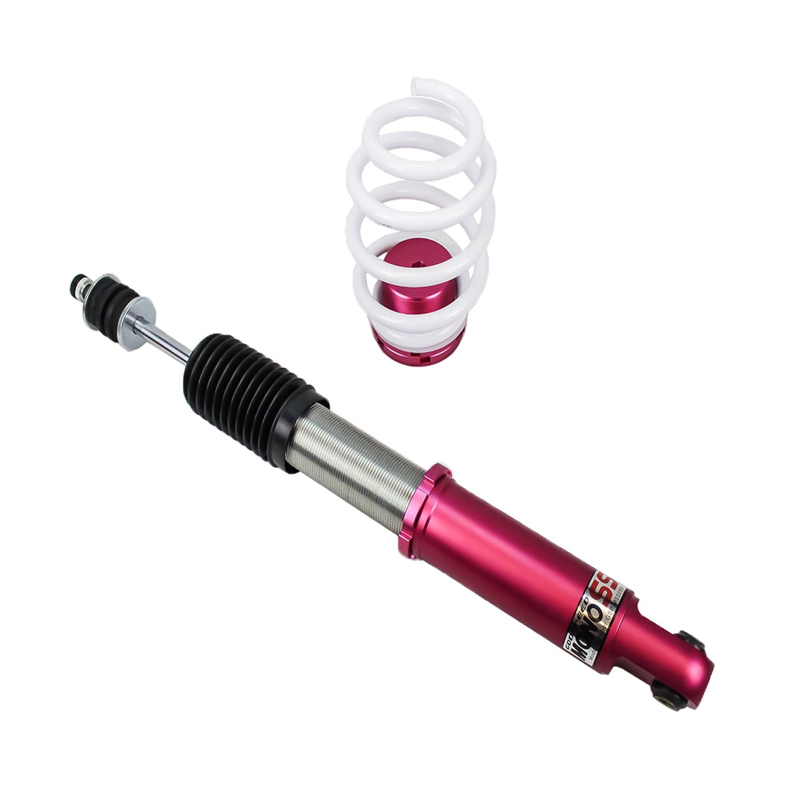 GodSpeed MonoSS coilovers are great entry level single adjustable coilovers. GodSpeed starts with a race coilover and tones it down for the street to give you an extremely capable coilover that you can comfortably use every day.  GodSpeed uses some of the best and most exotic components on the market such as a carbon seamless steel 52mm tube with a high performance internal shock piston that provides fast and precise damper response.  GodSpeed coilover springs are cold-bent from high strength SAE9252 steel to be comfortable and high performance.