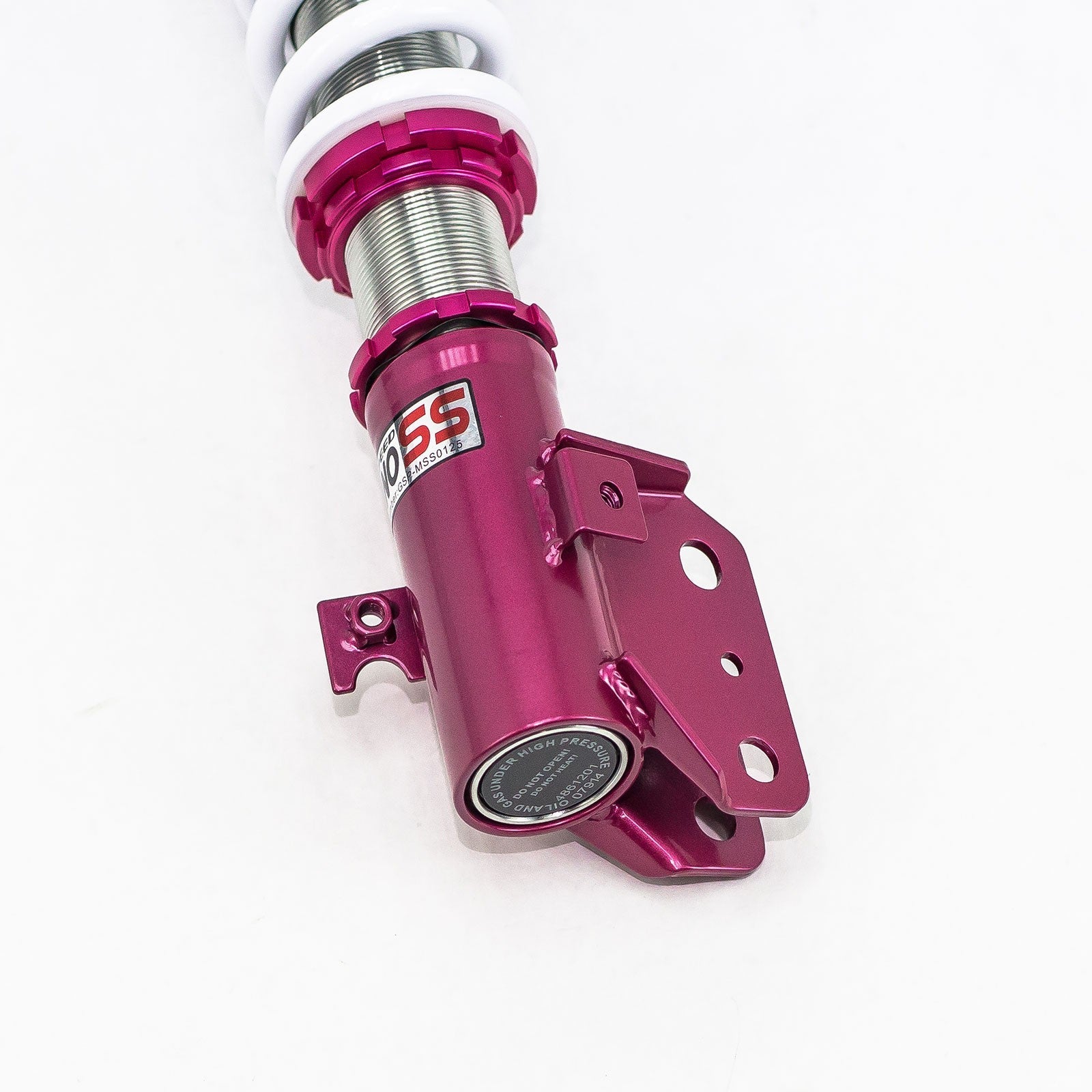 GodSpeed MonoSS coilovers are great entry level single adjustable coilovers. GodSpeed starts with a race coilover and tones it down for the street to give you an extremely capable coilover that you can comfortably use every day. GodSpeed uses some of the best and most exotic components on the market such as a carbon seamless steel 52mm tube with a high performance internal shock piston that provides fast and precise damper response. GodSpeed coilover springs are cold-bent from high strength SAE9252 steel to be comfortable and high performance.