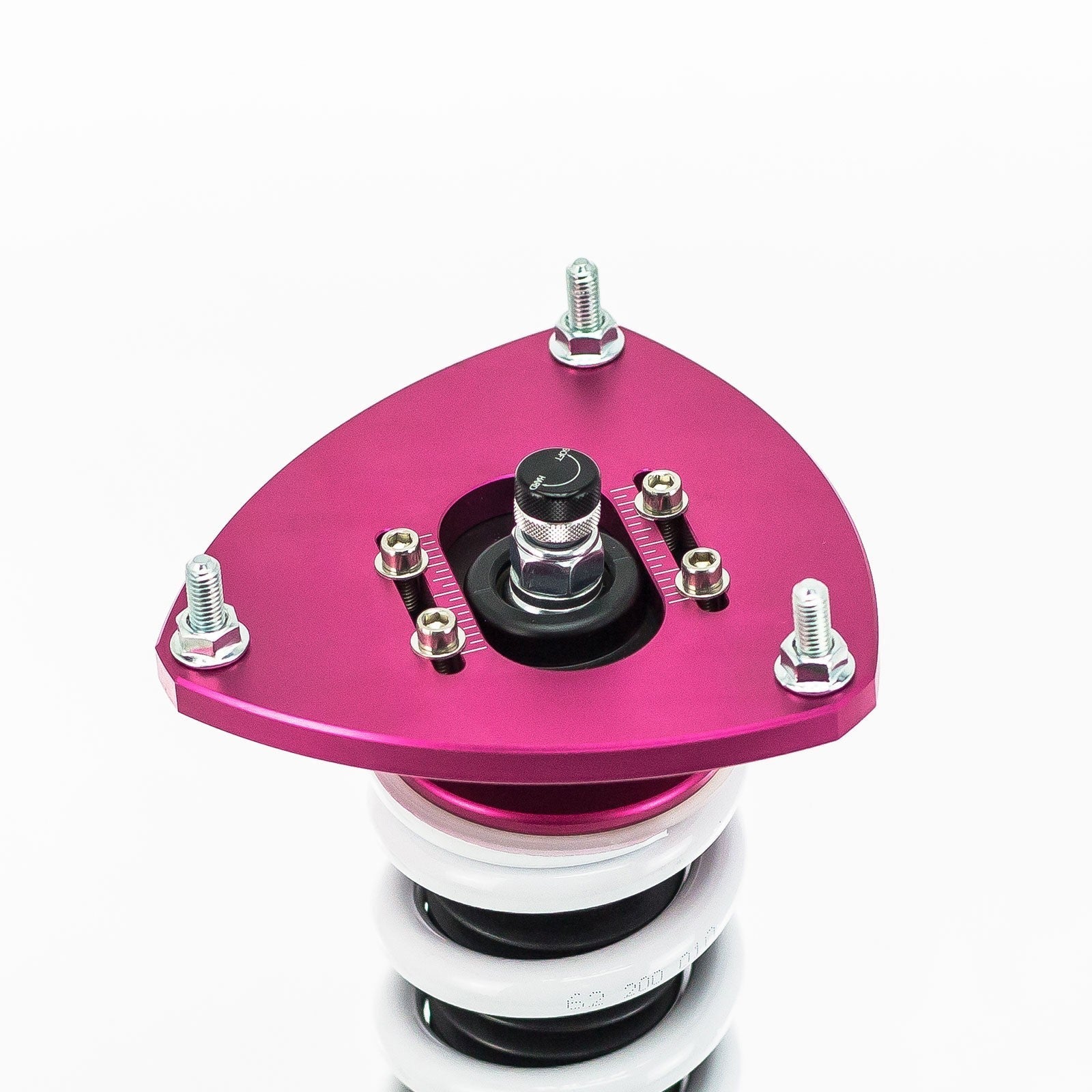 A big problem with a lot of entry level coilovers is that they use cheap shock oil, but GodSpeed doesn't follow that philosophy. Race quality shock oil ensures exceptional damper performance any any temperature, on or off the track. The GodSpeed coilover top hat uses a high performance Japanese KOYO 6204Z bearing pillowball mount (when applicable). Bottom shock brackets are also top quality and made from T7075 forged aluminum or carbon steel brackets for light weight and durability.