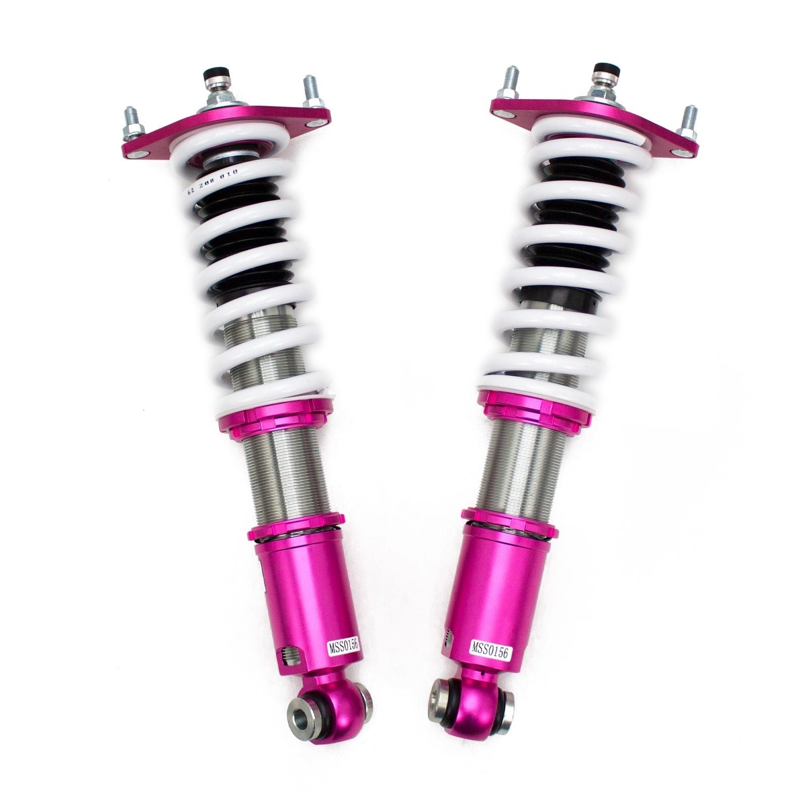 GodSpeed MonoSS coilovers are great entry level single adjustable coilovers. GodSpeed starts with a race coilover and tones it down for the street to give you an extremely capable coilover that you can comfortably use every day. GodSpeed uses some of the best and most exotic components on the market such as a carbon seamless steel 52mm tube with a high performance internal shock piston that provides fast and precise damper response. GodSpeed coilover springs are cold-bent from high strength SAE9252 steel to be comfortable and high performance.