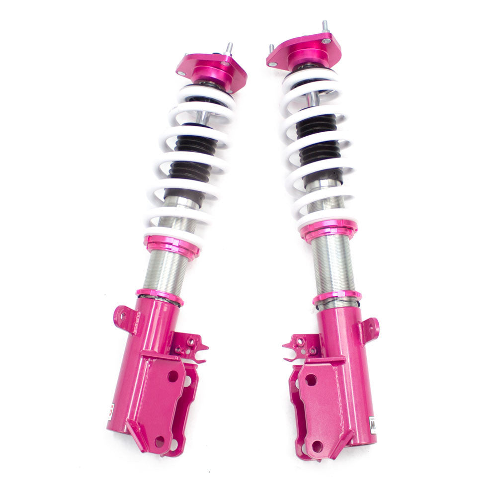 GodSpeed MonoSS coilovers are great entry level single adjustable coilovers. GodSpeed starts with a race coilover and tones it down for the street to give you an extremely capable coilover that you can comfortably use every day. GodSpeed uses some of the best and most exotic components on the market such as a carbon seamless steel 52mm tube with a high performance internal shock piston that provides fast and precise damper response. GodSpeed coilover springs are cold-bent from high strength SAE9252 steel to be comfortable and high performance.