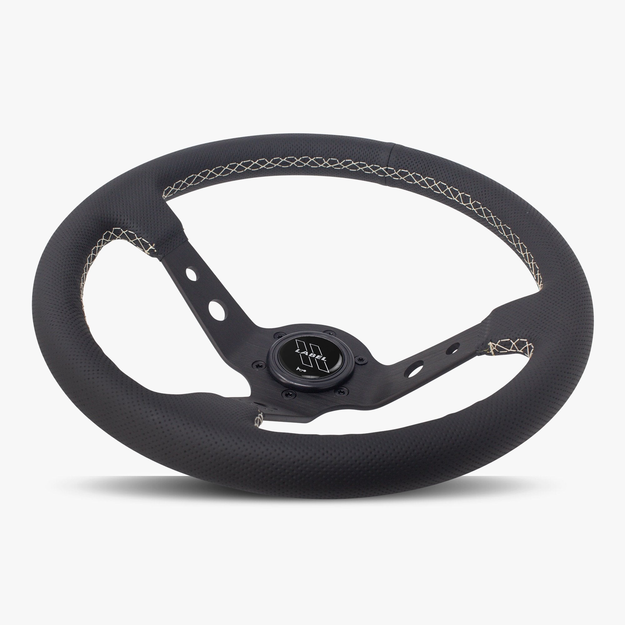 The Daytona | Black Perforated Leather | Black Spoke | White Stitch