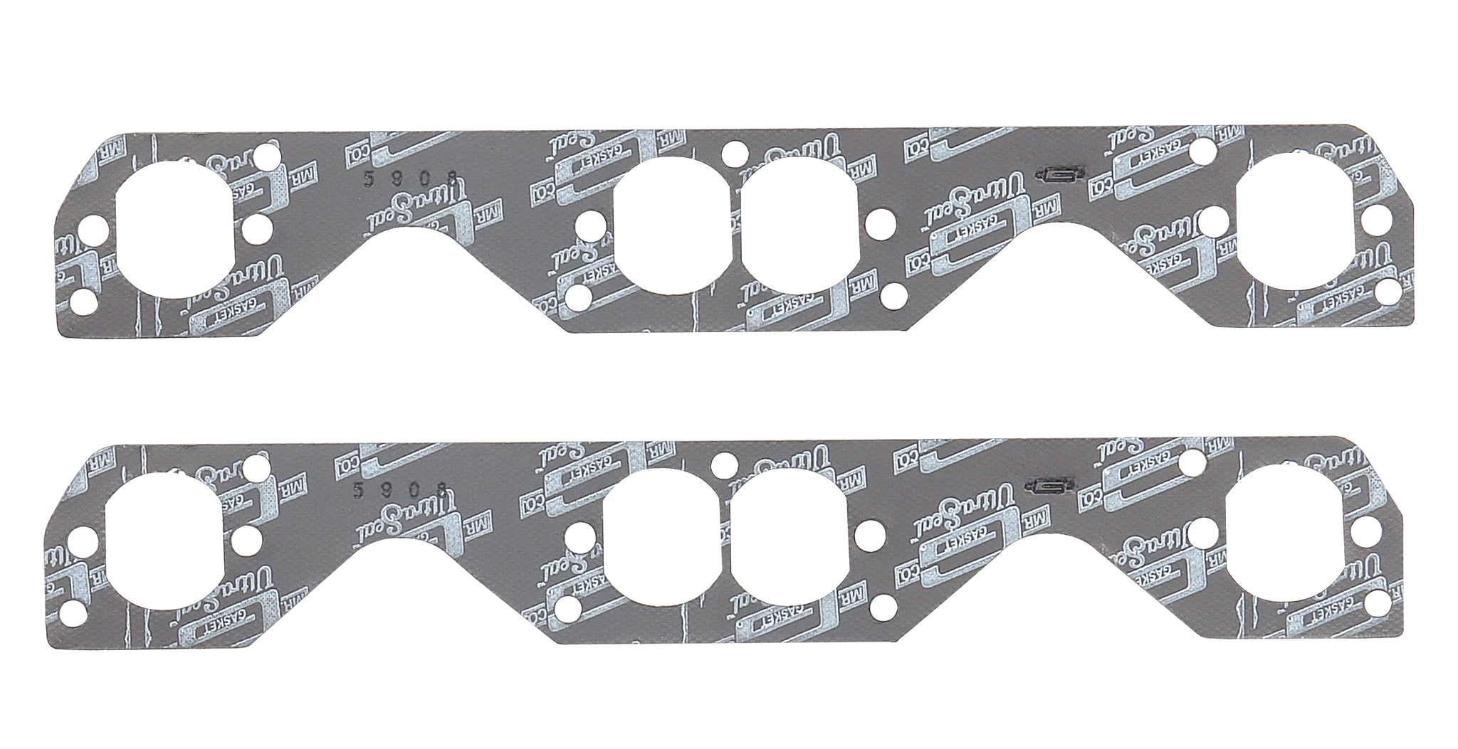 Manufactured from high-temperature steel core/graphite faced exhaust material. Expanded steel core provides stability and maximum torque retention to eliminate gasket failure. Graphite facing provides excellent heat resistance and thermal conductivity to transfer heat away from the cylinder head. Conforms to and seals minor surface irregularities. High recovery material allows header or manifold flange to stay sealed if flange loses clamp-load. Can be trimmed if necessary for modified port applications. For original equipment replacement, high performance street, drag race and oval track use.