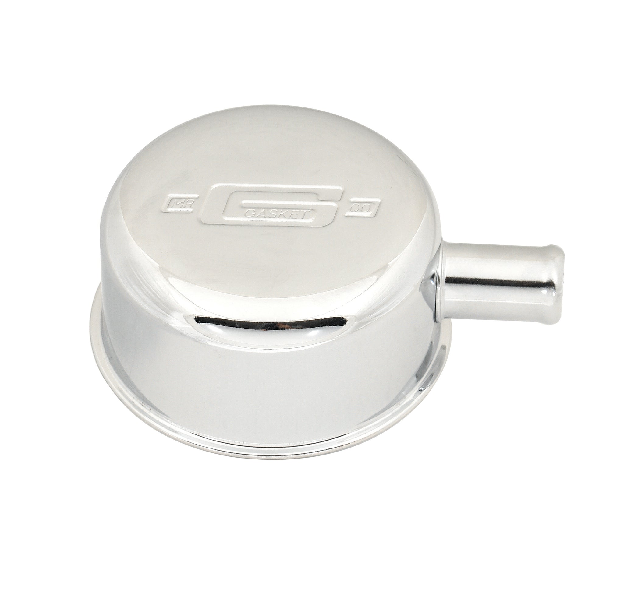 Chrome plated breather cap is ideal for race car vacuum balance systems, as well as original equipment applications with positive crankcase ventilation (PCV).