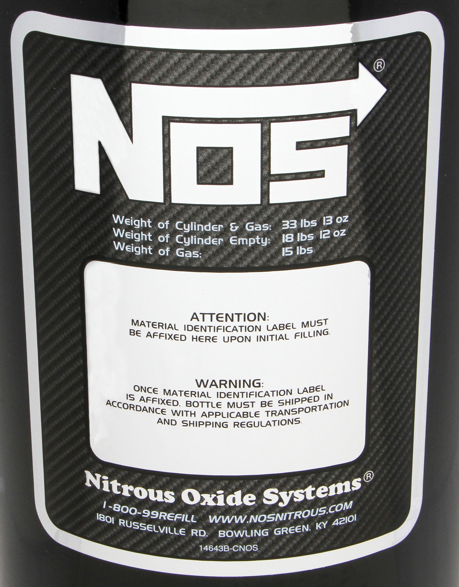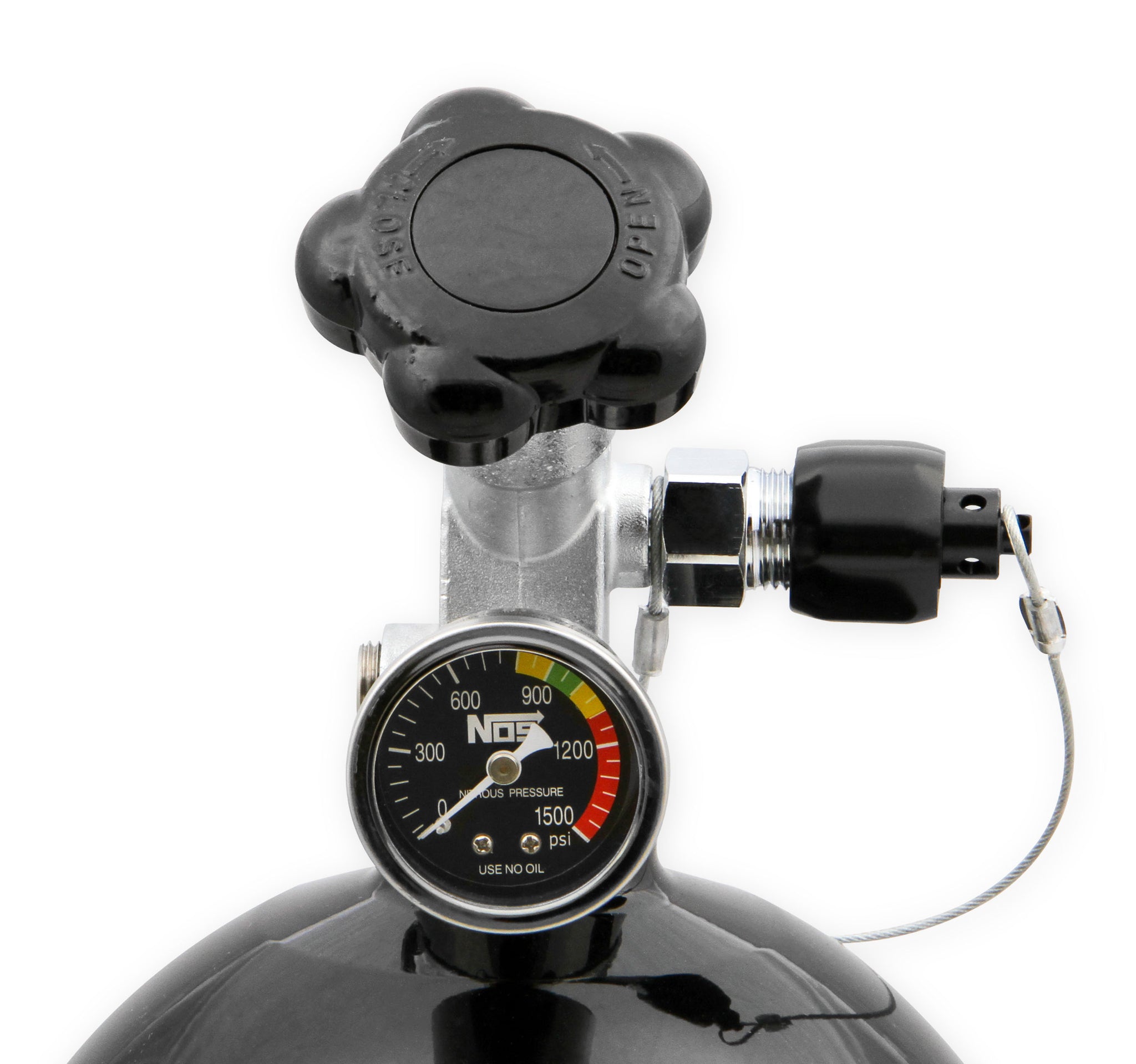 15 lb Nitrous Bottle w/ Black Finish & Super Hi Flo Valve - Includes Racer Safety Blow-Off & Gauge