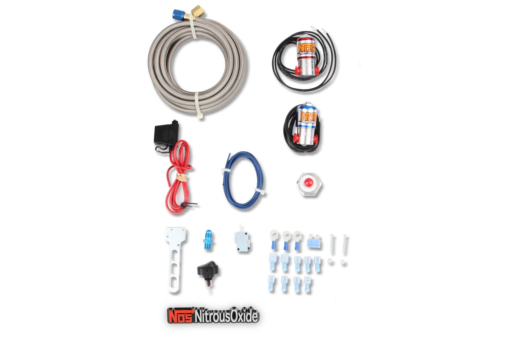 Engineered for precise distribution of nitrous and fuel for all domestic and foreign carbureted/EFI 4, 6, 8 cyl. & Rotary engines. The NOS Sportsman Fogger Systems offer superior atomization and tuning by injecting precisely measured amounts of fuel and nitrous into each individual port with our patented Fogger Nozzles. Power levels are adjustable by changing nitrous and fuel jets in each Fogger Nozzle. The latest in high-tech solenoid technology allows for an extreme degree of reliability with jetting adjustability ranging from a 50 to a 150 extra HP gain. All Sportsman Fogger Systems include a 10 lb. capacity nitrous bottle, Powershot nitrous and fuel solenoids, Fogger nozzles, aircraft quality steel braided hose, and all other necessary electrical and mounting hardware for a complete installation. Requires removal of intake manifold for plumbing.
