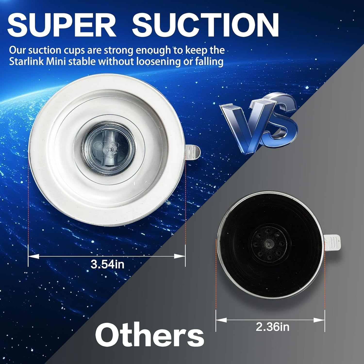 • Super Strong Suction: Engineered with a large, 3.54-inch (9 cm) diameter suction cup, significantly larger than typical 2.36-inch alternatives. This "SUPER SUCTION" design ensures exceptional stability, keeping your Starlink Mini firmly in place without loosening or falling, even in challenging conditions.