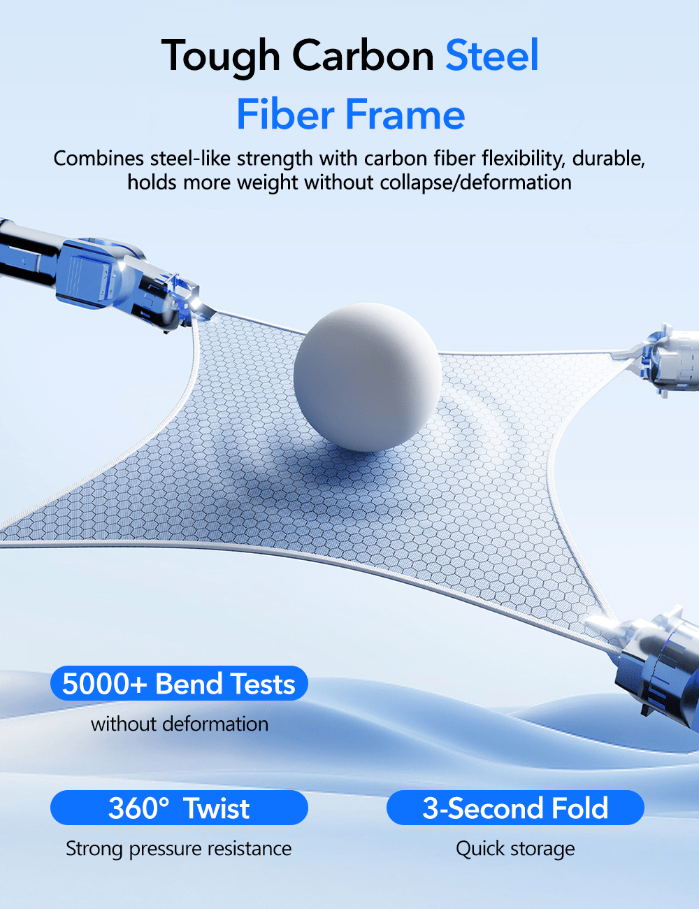 Robust high-strength carbon steel frame reinforced with flexible carbon fiber ensures a perfect, sag-free fit for lasting performance.