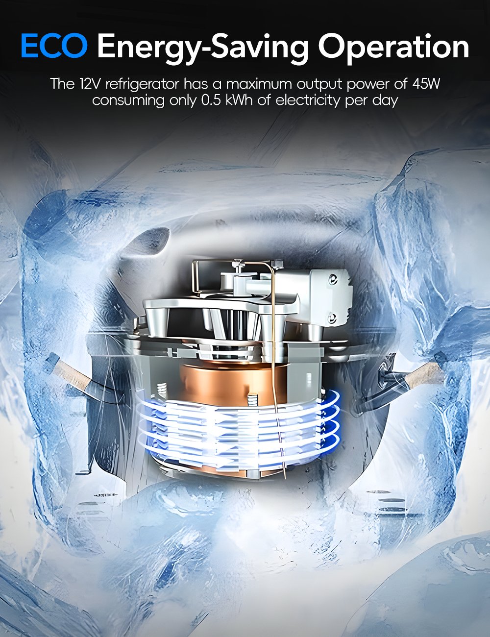 • 【Energy-Saving Technology】: Equipped with an efficient DC inverter compressor, this refrigerator consumes less than 0.5 kWh even when running continuously for 24 hours, having minimal impact on your vehicle’s battery life. Enjoy the convenience of frozen food without worrying about power consumption.