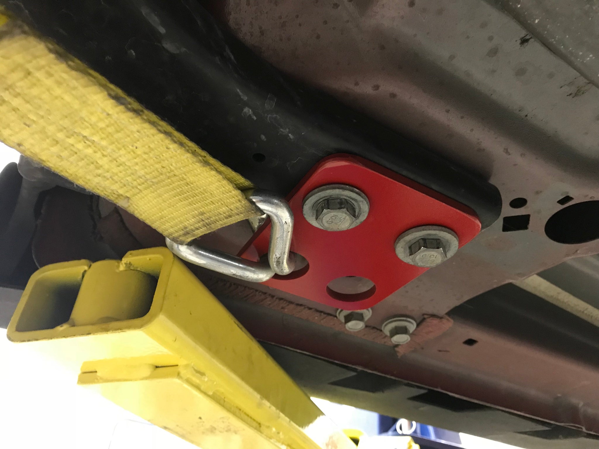 Strap your Mustang down to your trailer quickly, safely and easier than ever! Avoid using your lower control arms or chassis main brace or your wheels.
