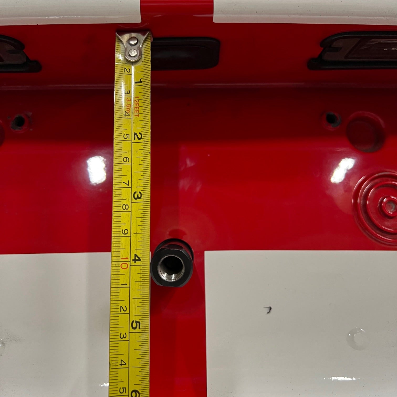 Our Mustang Shelby GT500 Feather Lite Stealth tow hooks combine form and function with a sleek design and single sided access to the fastening bolt. Built around a stainless steel shaft using industry leading Cerakote finishing, The Feather Lite design removes the heim joint compared to our Premium offering and adds in a nylon insert to hold the shaft in the desirable position. This product is available with a billet aluminum D-ring that is powder coated. Made in the USA!