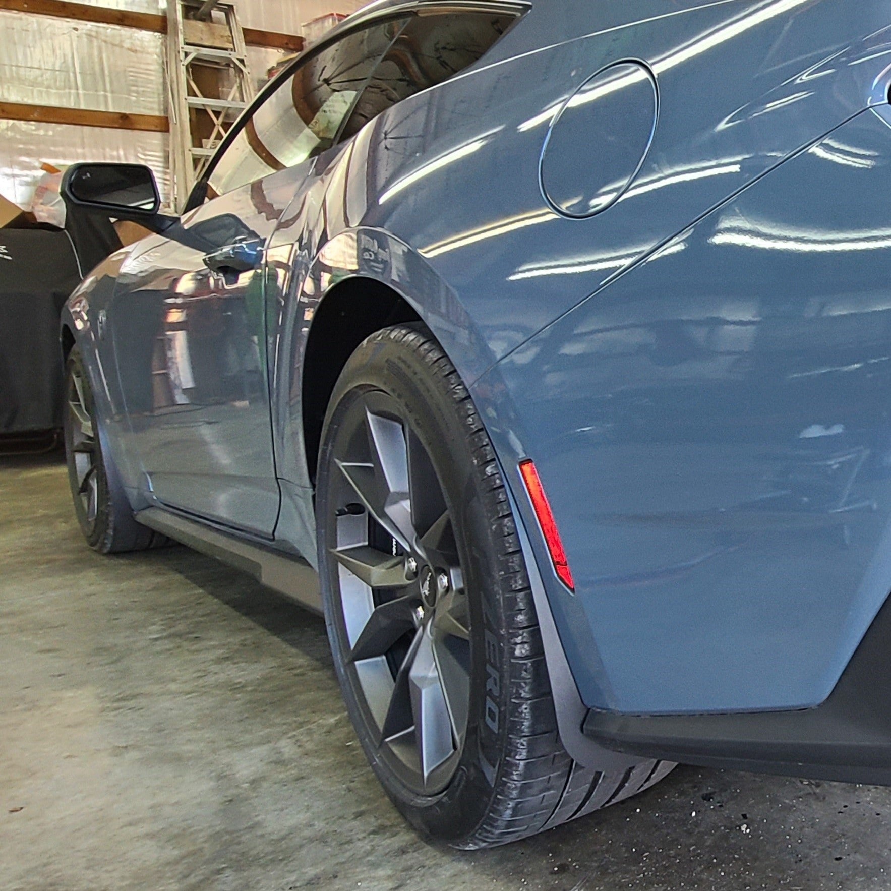Our 2024 Ford Mustang Dark Horse Standard Front & Rear Rock Guard offering is built to use the OEM mounting locations to offer a clean look that will keep rocks off your body panels, side skirts and wheels.