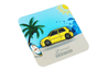 Automotive-themed pin features two-posts with rubber clasps.