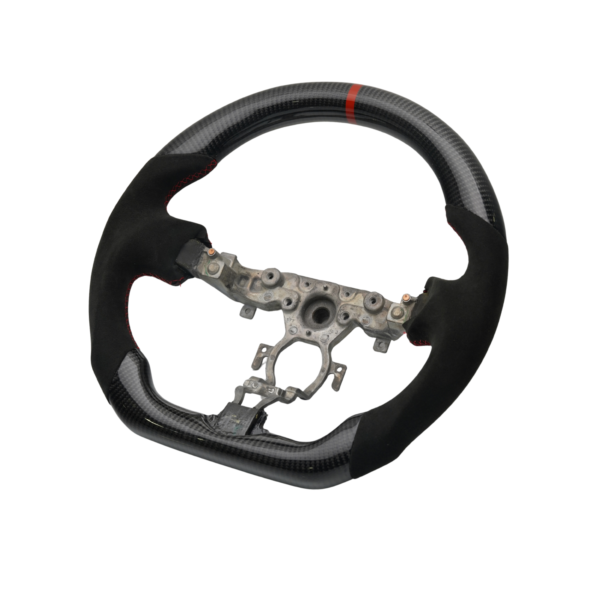 Each wheel features lightweight real carbon fiber top and bottom sections combined with your choice of premium leather or genuine Italian Alcantara grips. The sculpted hand grips improve control and comfort, giving your 370Z’s cockpit a refined, motorsport-inspired upgrade.