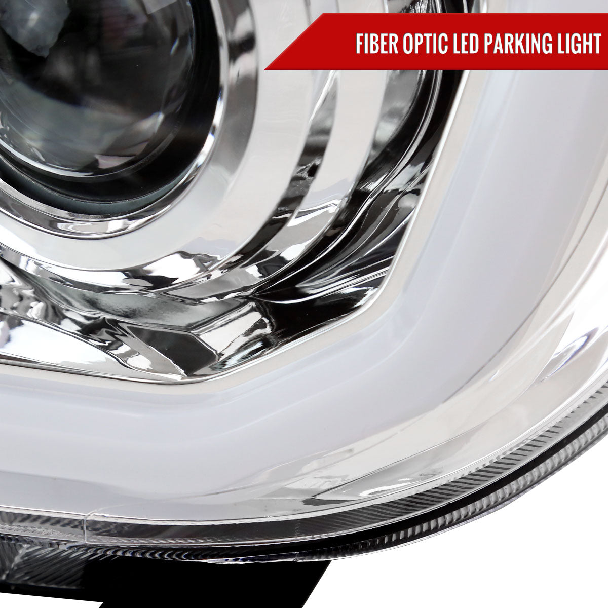 - Comes with (1) pair of projector headlights with LED bar in a chrome housing with clear lens