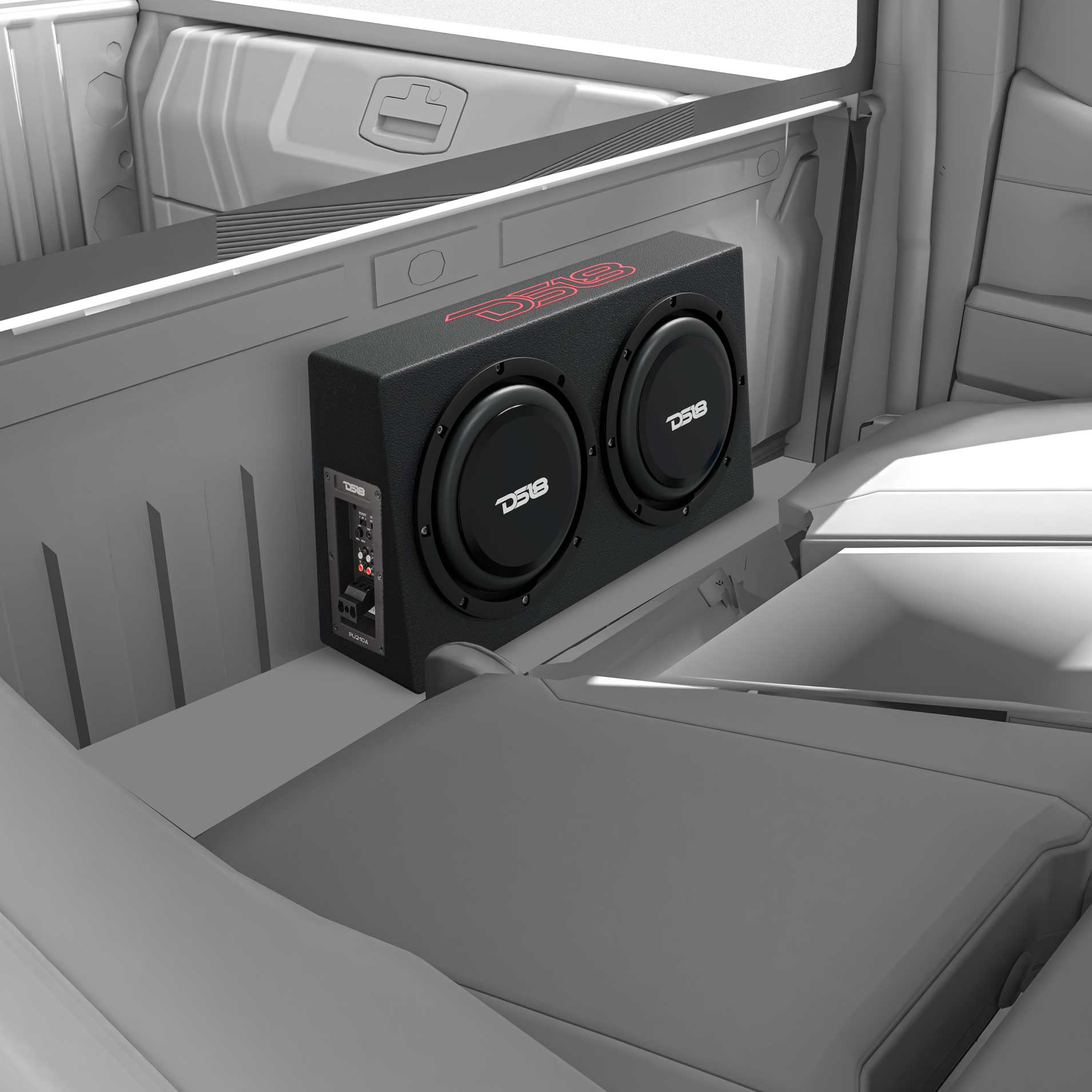 Unleash high-performance bass in your pick-up with DS18’s PU210A subwoofer. This 10-inch active and passive subwoofer work in harmony to deliver punchy bass in tight spaces. Specifically designed for compact settings, its shallow enclosure seamlessly fits into tight spaces, ensuring your vehicle's cabin remains uncluttered while elevating your sound system to new heights.