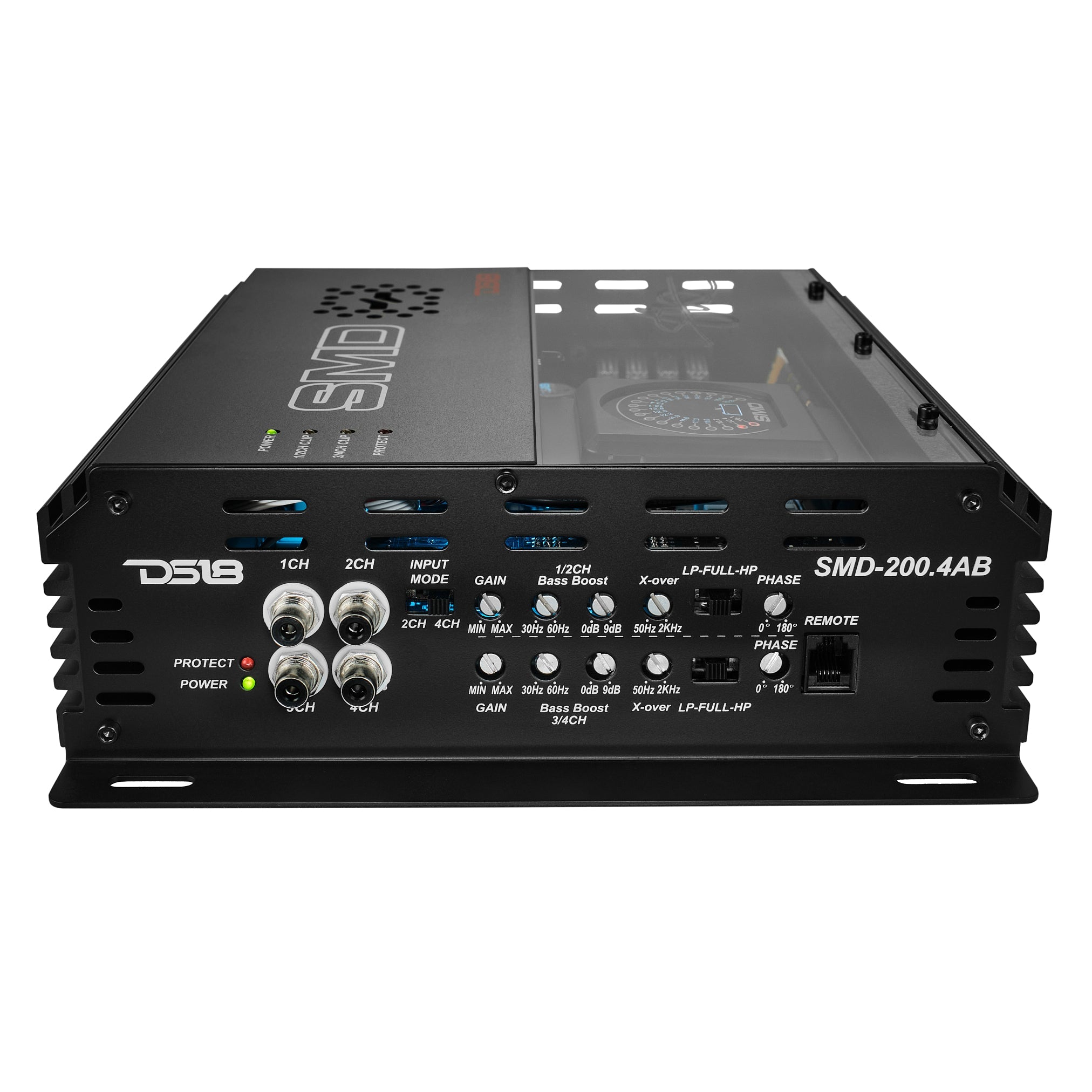 Crafted with precision using only the best components, DS18’s SMD-200.4AB is a full-range amplifier capable of powering anything—from subs and tweeters to midbass, vocals, and any front and rear combination of speakers. Its advanced protection suite includes thermal, overload, DC output, short circuit, and voltage input protection, ensuring safe operation in any setup.