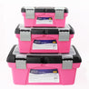 A TOOL BOX FOR EVERY NEED. Use them for tool storage, to organize craft supplies, small toys, fishing tackles, paints, pens, brushes, and more. The smaller box can even be used as a lunch box.  The pink color is fun and attractive to bring anywhere.