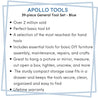 STURDY COMPACT STORAGE CASE: Tools are neatly stored in a sturdy case to keep them secure, clean, organized, and easy to find.