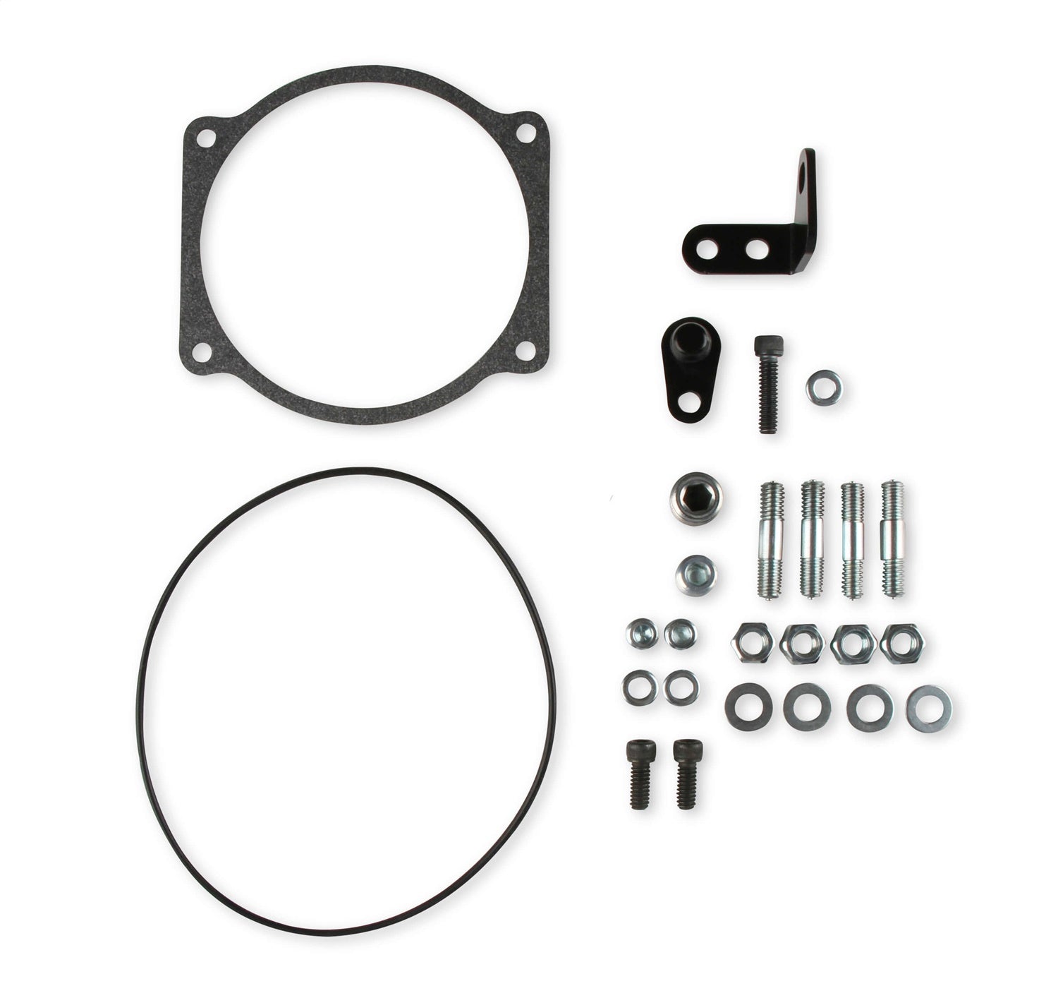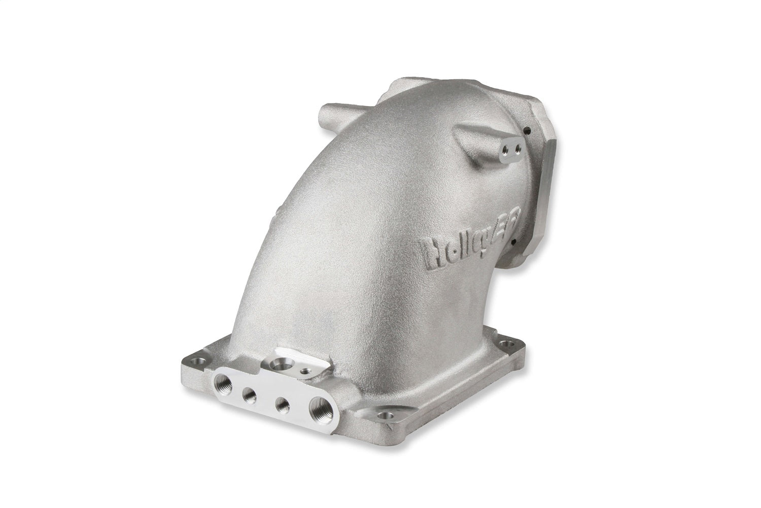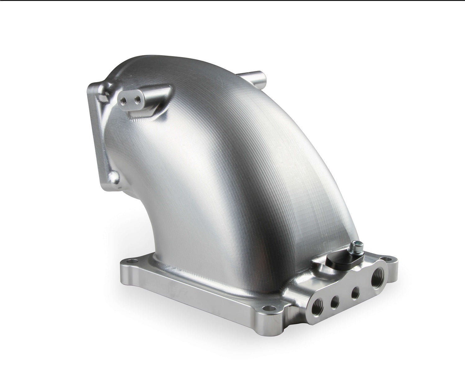 Features (4) vacuum ports, MAP sensor port, machined / port matched to 4500 gasket, and 100° throttle body angle for extra hood clearance. Includes billet MAP sensor port cover, gaskets & hardware. The port design spacing will also allow a transducer to be used if a MAP sensor is not needed. The intake flange has an o-ring groove for a positive flange seal and the o-ring is included as well.
