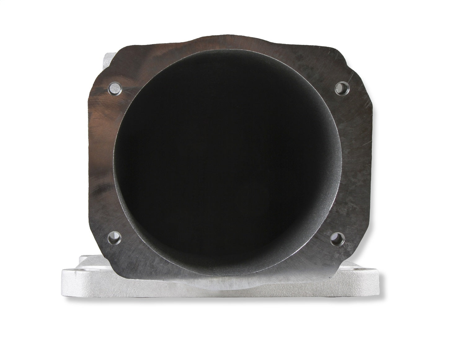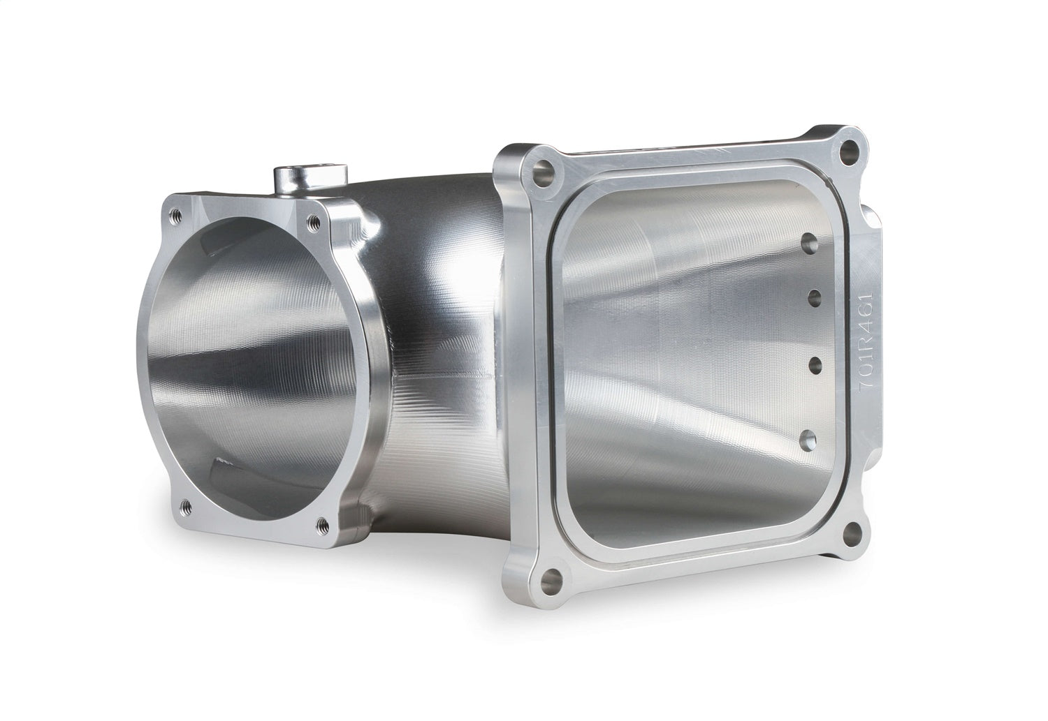 Features (4) vacuum ports, MAP sensor port, machined / port matched to 4500 gasket, and 100° throttle body angle for extra hood clearance. Includes billet MAP sensor port cover, gaskets & hardware. The port design spacing will also allow a transducer to be used if a MAP sensor is not needed. The intake flange has an o-ring groove for a positive flange seal and the o-ring is included as well.