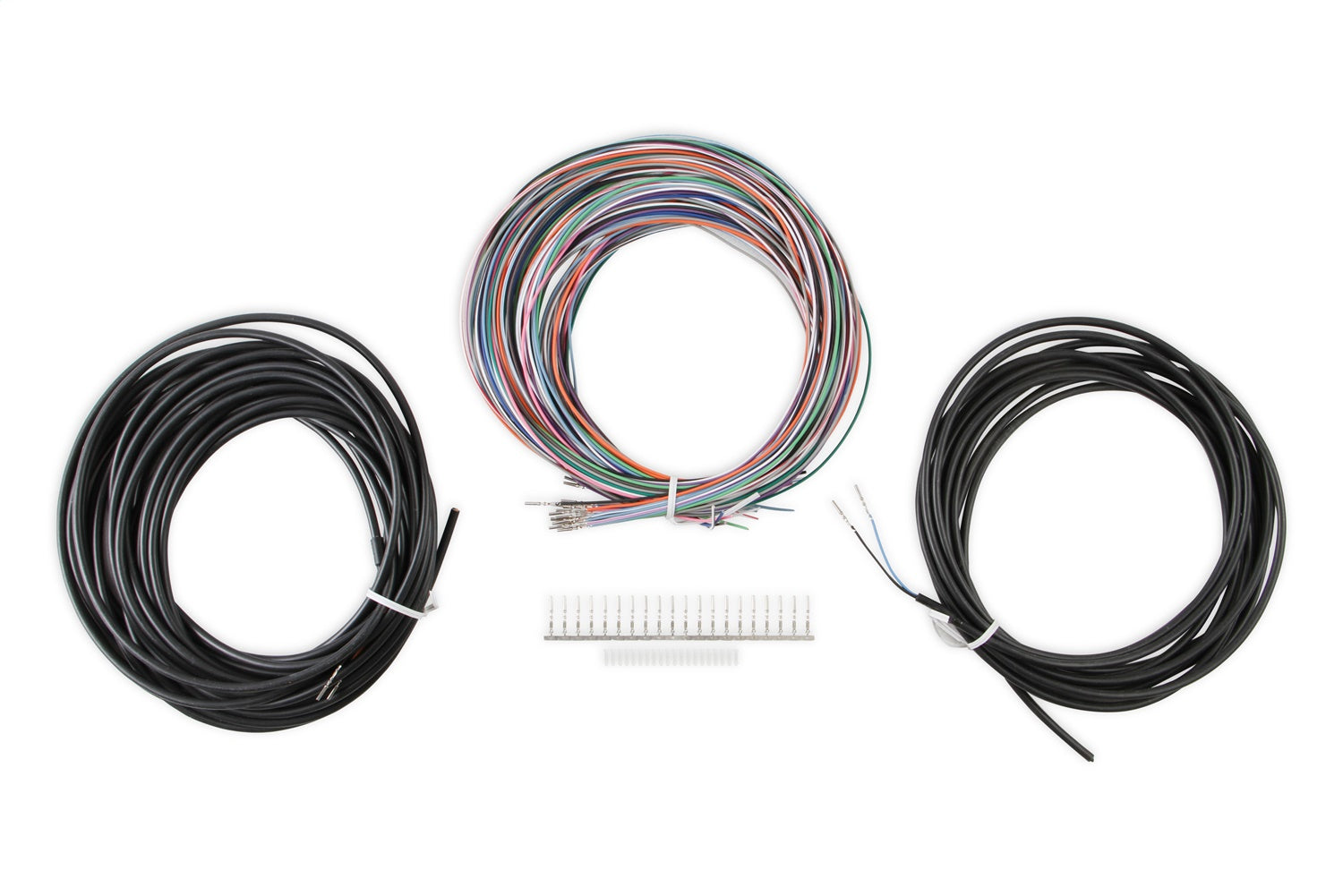 This wiring kit is intended to fully populate all of the inputs and outputs for part numbers 553-111 and 553-112 Pro Dashes. These can easily be inserted into the existing 34 pin dash connector. It contains loose wires and 2 and 3 conductor cable (jacketed but not shielded). There are TE superseal pins crimped on every wire and cable. There are also extra pins that can be used (likely needed when using the jacketed cable for more than one sensor).