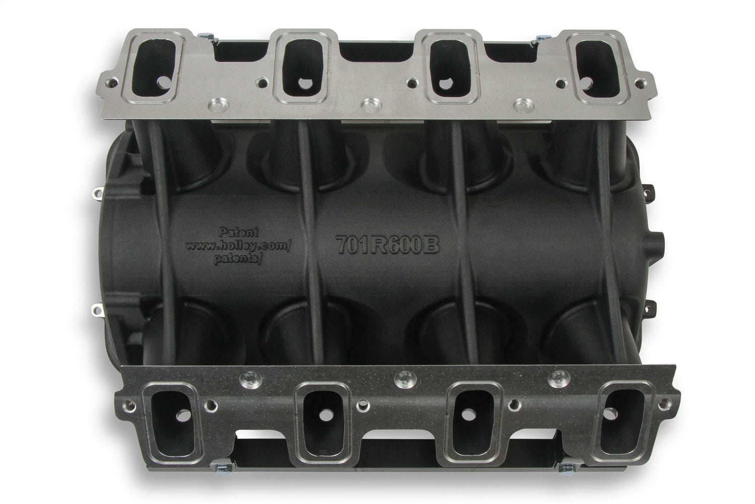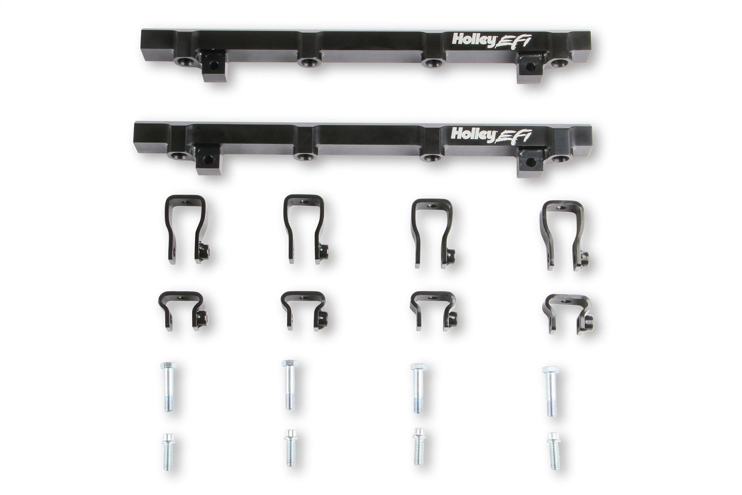 The Holley LS3 Lo-Ram intake manifold kits are designed for GM LS Gen III and IV engines equipped with GM LS3/L92 cylinder heads. These intake manifolds will work with OE or aftermarket cylinder heads. The Lo-Ram intake manifolds are designed for forced induction (supercharged or turbocharged) engine applications and the 105 mm throttle body part number 112-581 or similar models. The base intake manifold is designed with a low height to aid the packaging of a plenum-mounted air-to-water intercooler in a top-feed configuration. Additional manifold designs include both single and dual injector options. Available with both as-cast satin and black power-coat finishes. High volume fuel rails for eight and sixteen injector configurations. Mounting hardware included with 3/4-16 O-ring ports (8 AN)