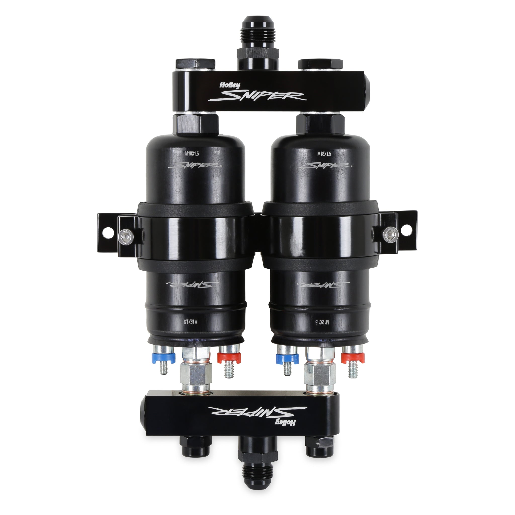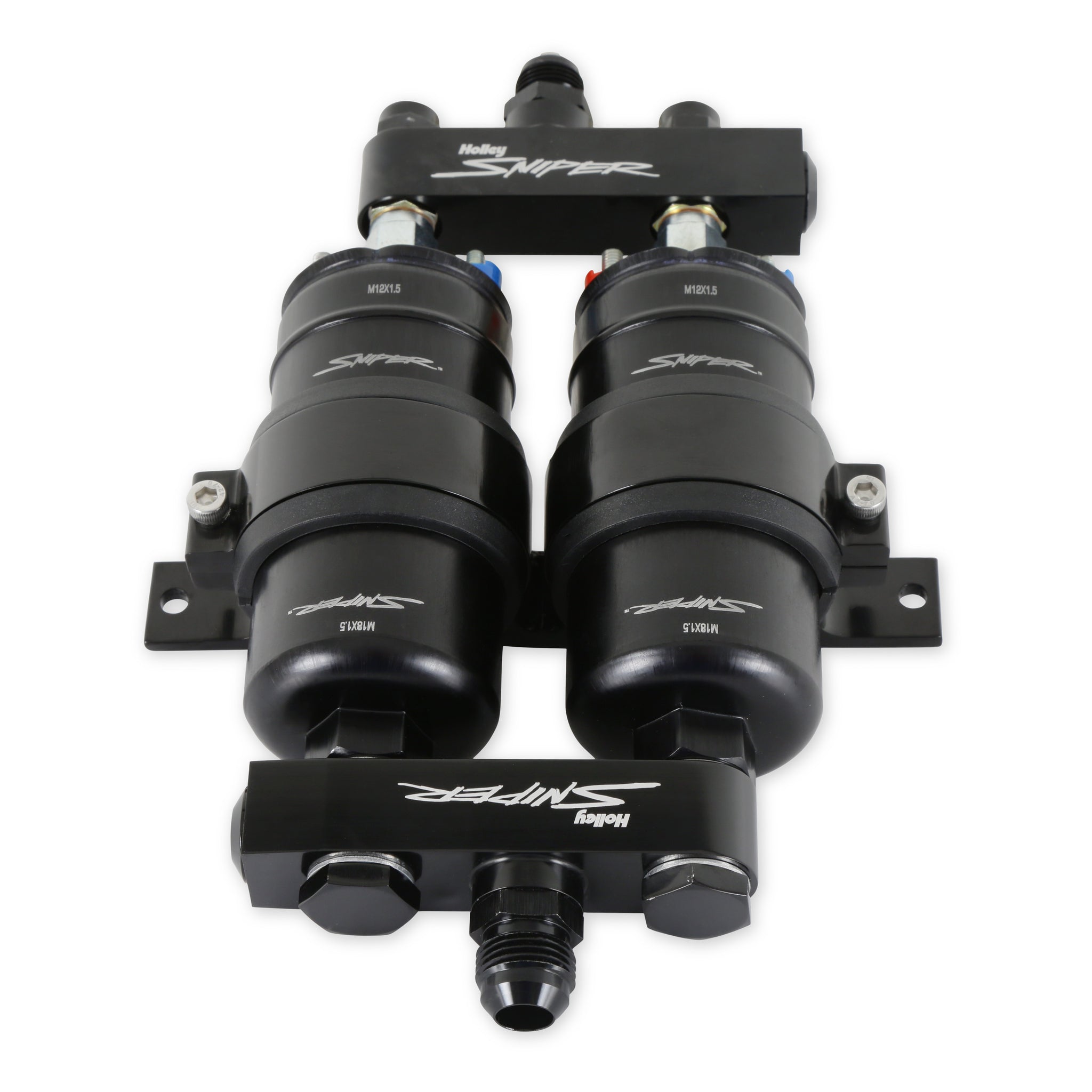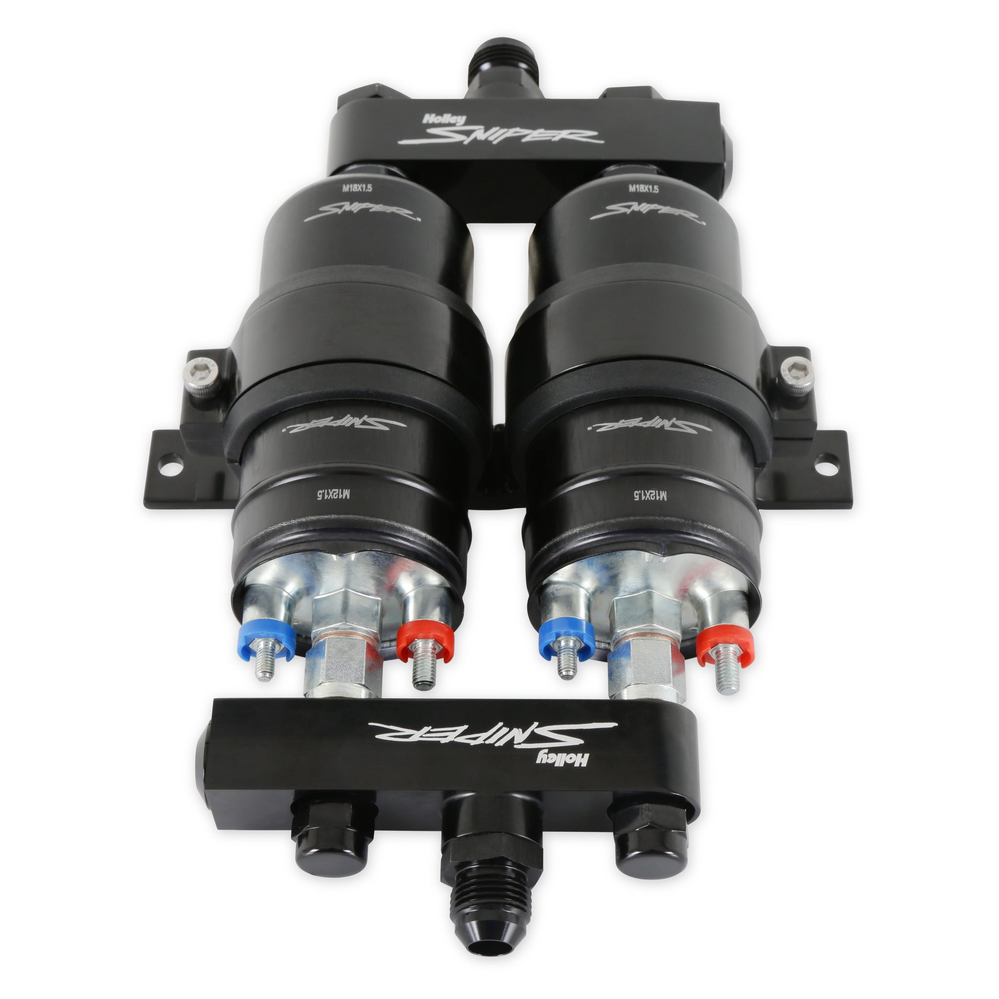 The pump manifold assembly is made from billet, anodized, and laser etched for good looks. The manifold inlet and outlet manifolds have 2 ORB ports each to accommodate for different mounting and plumbing situations. Plugs are included to seal off unused ports. The kit includes connectors, seals and detailed assembly instructions.