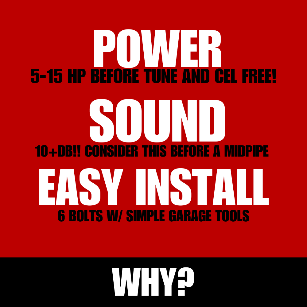4. CEL Free: Yes! This intermediate pipe is designed to ensure that no Check Engine Light (CEL) is triggered, all while significantly reducing the exhaust restriction from your downpipe. Unlike most full downpipe systems, which are prone to throwing a CEL over time, this product provides a hassle-free solution.