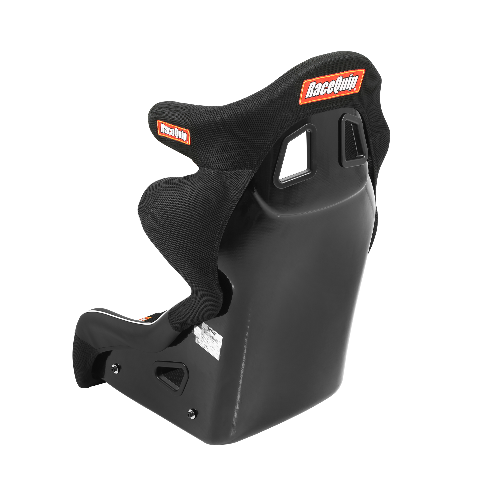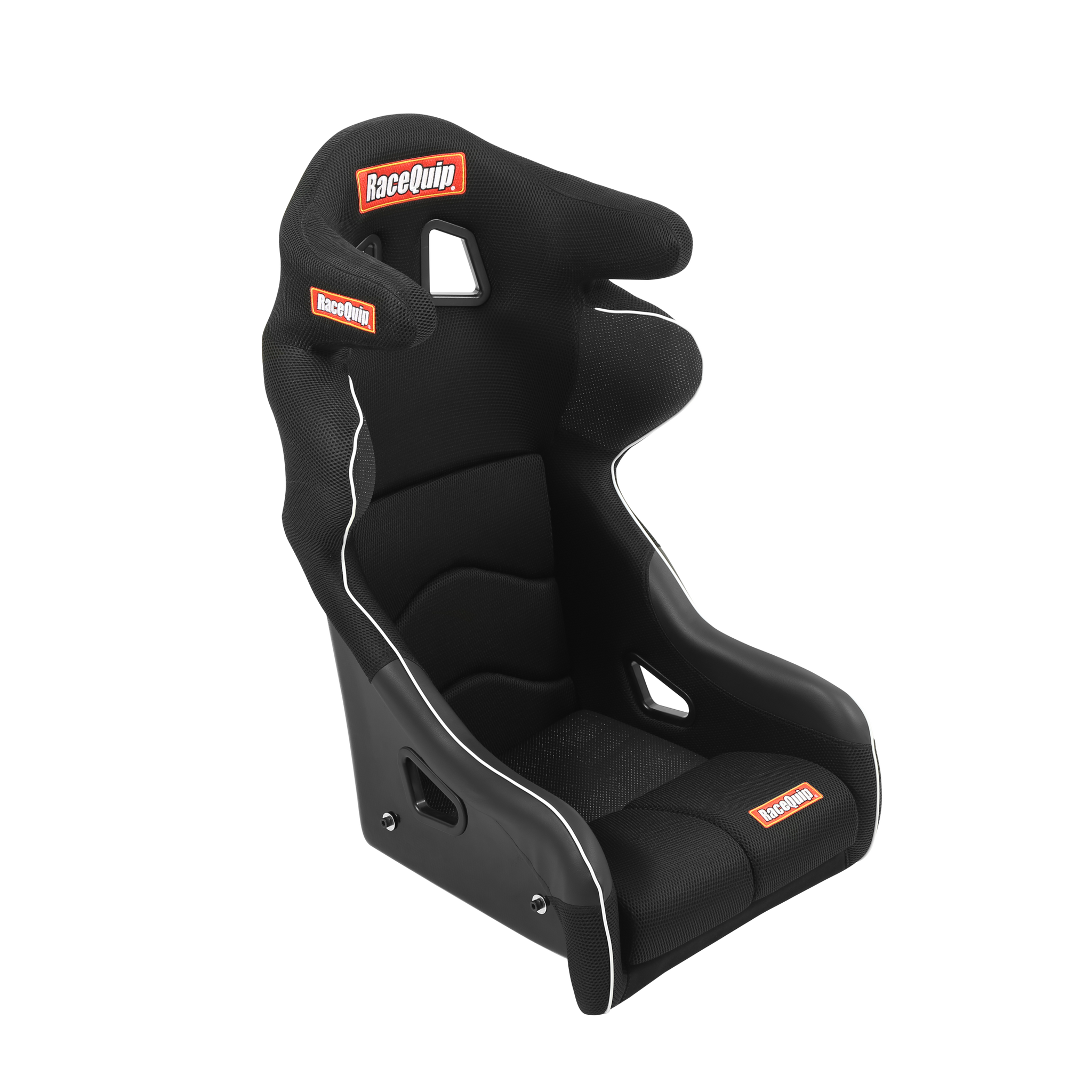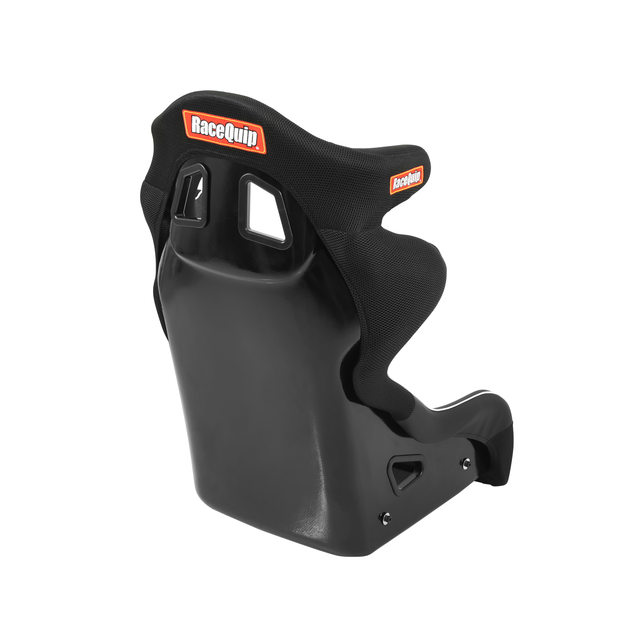 RaceQuip FIA Certified Full Containment Composite Racing Seats provide the support to hold you firmly in place for increased car control. This seat is certified to FIA 8855-1999 specifications with FIA hologram affixed. The design is suitable for professional racing with its increased thigh and hip support along with extended shoulder and rib bolsters for extra containment. The halo protrusions at the top provide additional head support in the case of a side impact which is why this seat is considered Full Containment. The shell is a one-piece lightweight, FRP hand-laid composite structure built for strength and durability. The design accommodates all Head and Neck restraints and there are five seat belt guides to handle 4, 5 or 6-point harness sets. The seat bottom and back cushions incorporate energy absorbing memory foam for comfort and safety. The seat material is a black mesh fabric for increased breathability with a more durable smooth covering in high-wear areas. The exposed areas of the shell are a shiny black gelcoat for a great look and easier cleaning. There are four built-in 8mm side mount threaded fasteners (brackets not included). Optional RaceQuip brackets allow the seat mounting to go from 0° Upright position to 30° Layback position. Seats weigh about 23 lbs.