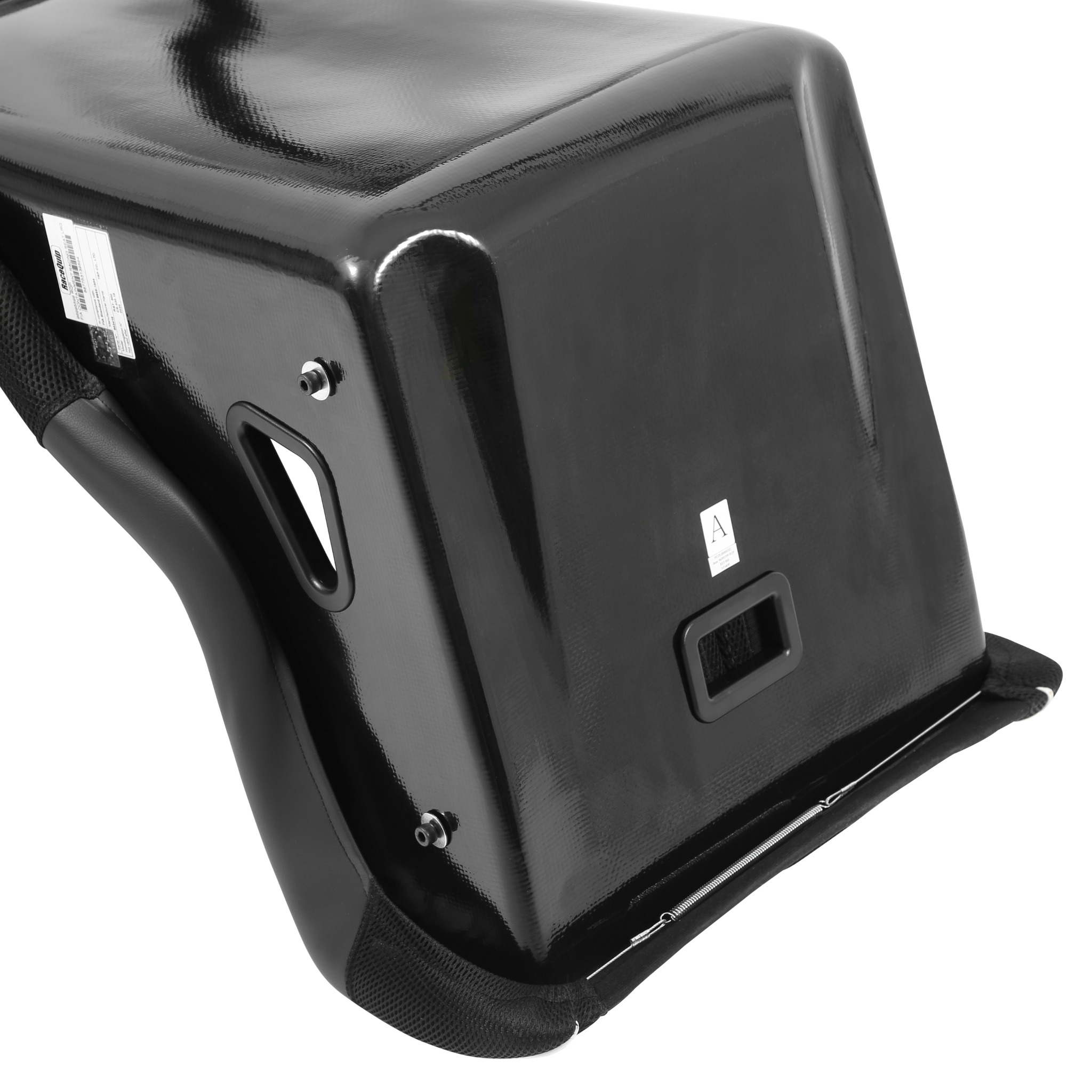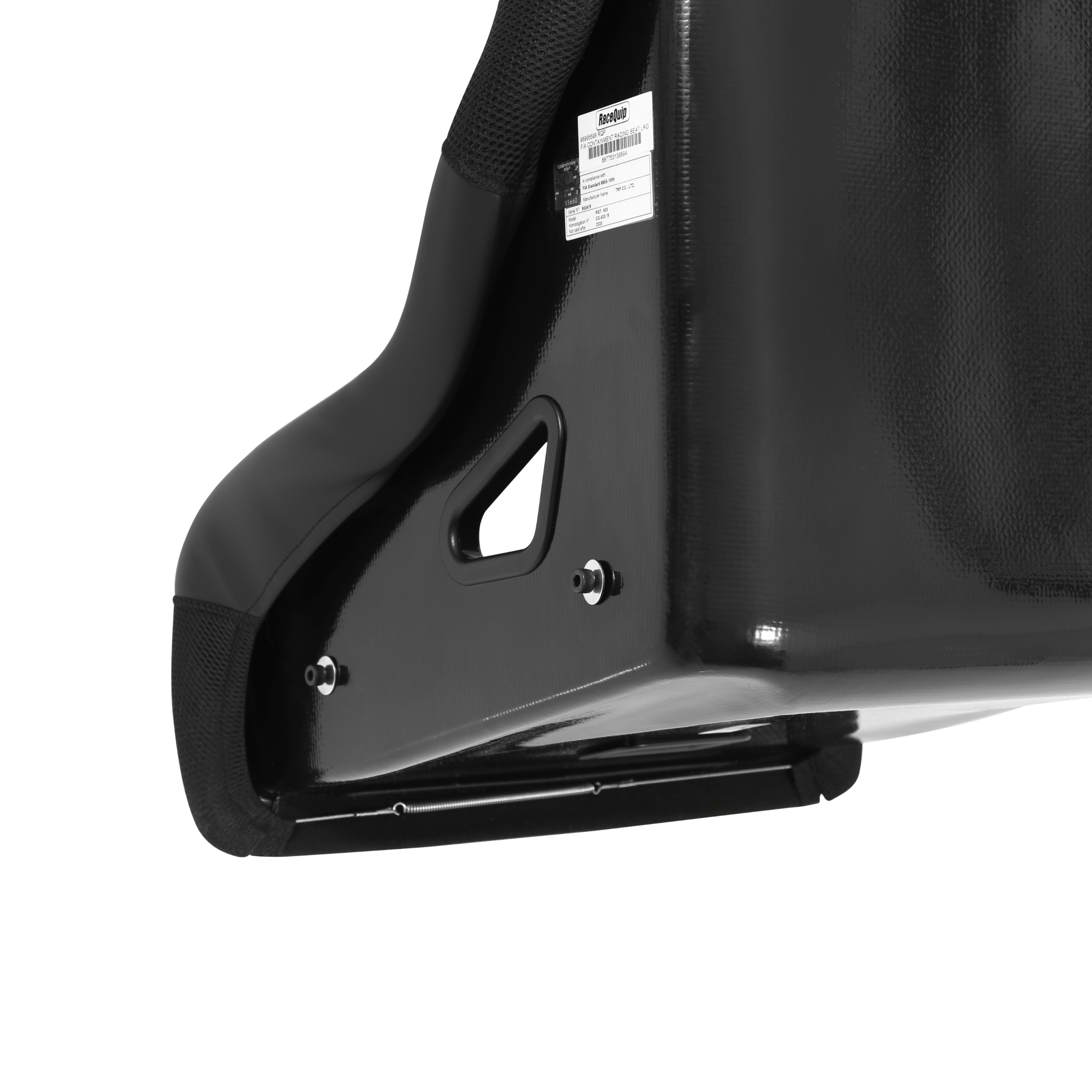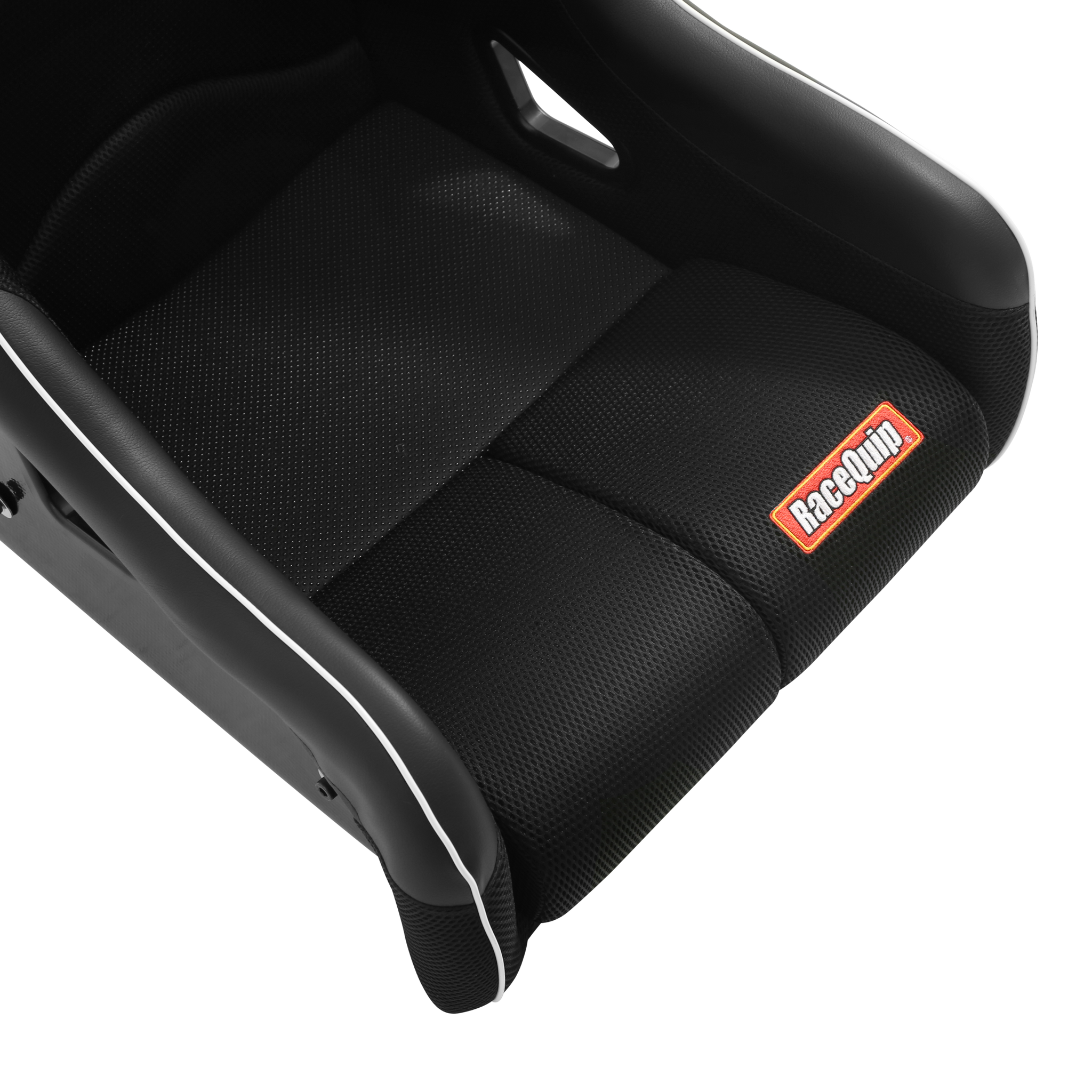 RaceQuip FIA Certified Full Containment Composite Racing Seats provide the support to hold you firmly in place for increased car control. This seat is certified to FIA 8855-1999 specifications with FIA hologram affixed. The design is suitable for professional racing with its increased thigh and hip support along with extended shoulder and rib bolsters for extra containment. The halo protrusions at the top provide additional head support in the case of a side impact which is why this seat is considered Full Containment. The shell is a one-piece lightweight, FRP hand-laid composite structure built for strength and durability. The design accommodates all Head and Neck restraints and there are five seat belt guides to handle 4, 5 or 6-point harness sets. The seat bottom and back cushions incorporate energy absorbing memory foam for comfort and safety. The seat material is a black mesh fabric for increased breathability with a more durable smooth covering in high-wear areas. The exposed areas of the shell are a shiny black gelcoat for a great look and easier cleaning. There are four built-in 8mm side mount threaded fasteners (brackets not included). Optional RaceQuip brackets allow the seat mounting to go from 0° Upright position to 30° Layback position. Seats weigh about 23 lbs.