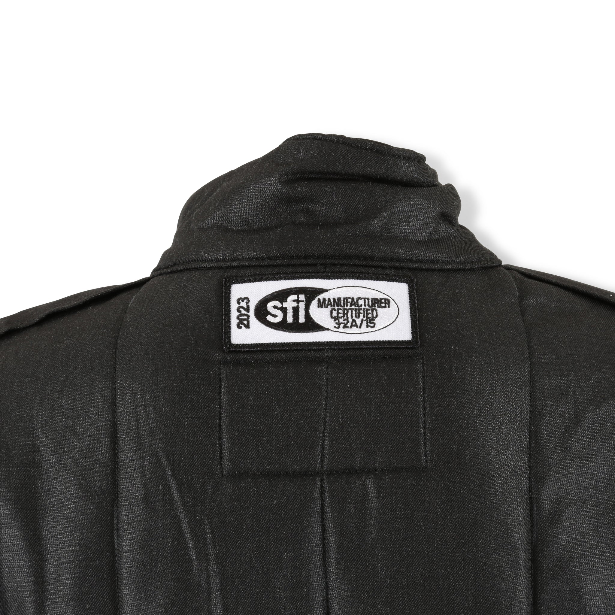 This RaceQuip multi-layer SFI-15 racing driver's fire suit jacket is made up of multiple layers of especially pliable quilted Nomex®. This proprietary soft & supple aramid fabric blend creates the most flexible and comfortable SFI 3.2A/15 racing jacket on the market. The outer layer of Nomex® features a shiny black finish with vertical quilting. All suit accents are black including stripes. collar, zipper overlap, epaulets, and cuffs. RaceQuip uses an oversize heavy duty brass YKK Nomex® backed zipper for added durability. Elastic gathers near the waist keep the jacket pulled taught on the bottom for proper fit. Exceeds SFI 3.2A/15 specs with tag placed on back of collar. Includes SFI 3.3 Rated Arm Restraint D-Rings and Clip-On Tethers. Manufactured in sizes Small - 2X-Large (refer to sizing chart).