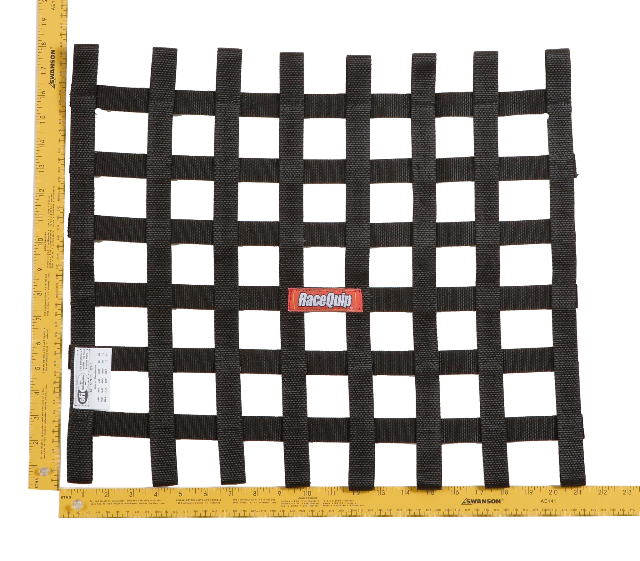 RaceQuip SFI 27.1 Rated Ribbon Window Nets are constructed of heavy-duty 1" polypropylene webbing and nylon thread for maximum durability. RaceQuip utilizes a jig-built construction technique to ensure consistent size, shape, and fit. This auto racing window net is a very unique size (15" High X 18" Wide) and satisfies many applications where a custom racecar window net would be needed. SFI 27.1 certified and available in black.