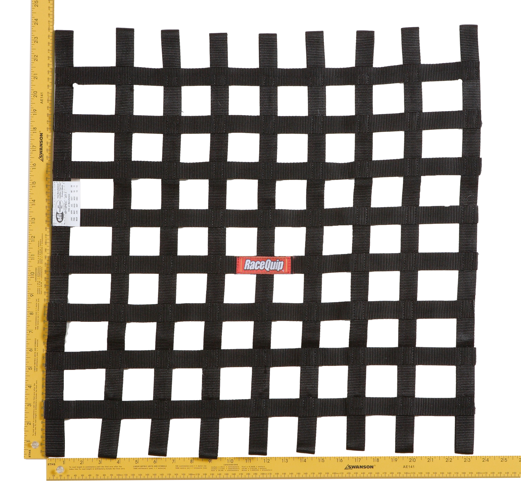 RaceQuip SFI 27.1 Rated Ribbon Window Nets are constructed of heavy-duty 1" polypropylene webbing and nylon thread for maximum durability. RaceQuip utilizes a jig-built construction technique to ensure consistent size, shape, and fit. This auto racing window net is a very unique size (15" High X 18" Wide) and satisfies many applications where a custom racecar window net would be needed. SFI 27.1 certified and available in black.