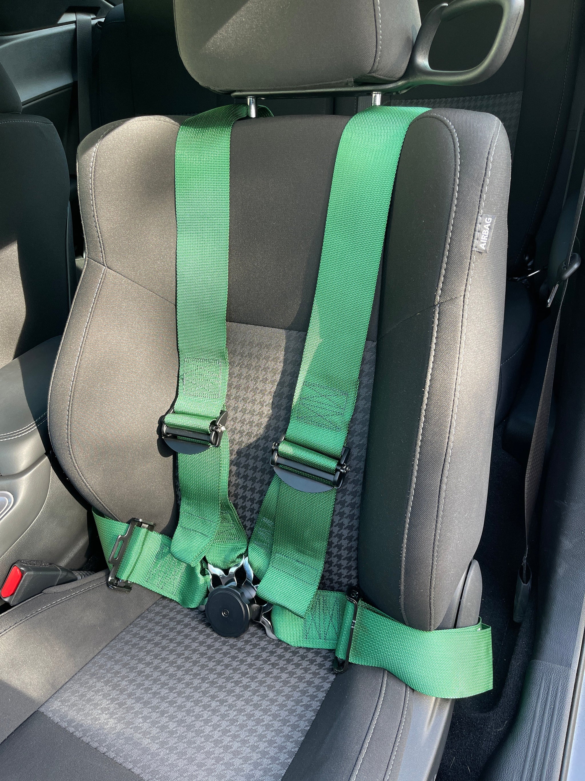 Our 4-point cam-lock elite racing harness belt has 3" wide webbing, with bolt-in lap belts, and bolt-in or wrap-around pull down shoulder belts. (It comes with the bolt-in clip or you can remove it to install wrapped around your harness bar.) Black hardware gives an upscale look.