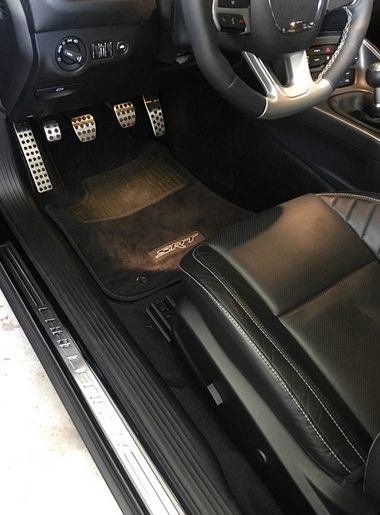 Our footrest / dead pedal completes the look of your interior and matches our parking brake cover as well as the Mopar accelerator / brake / clutch pedal kits that come on SRT vehicles and as a factory option from Mopar.