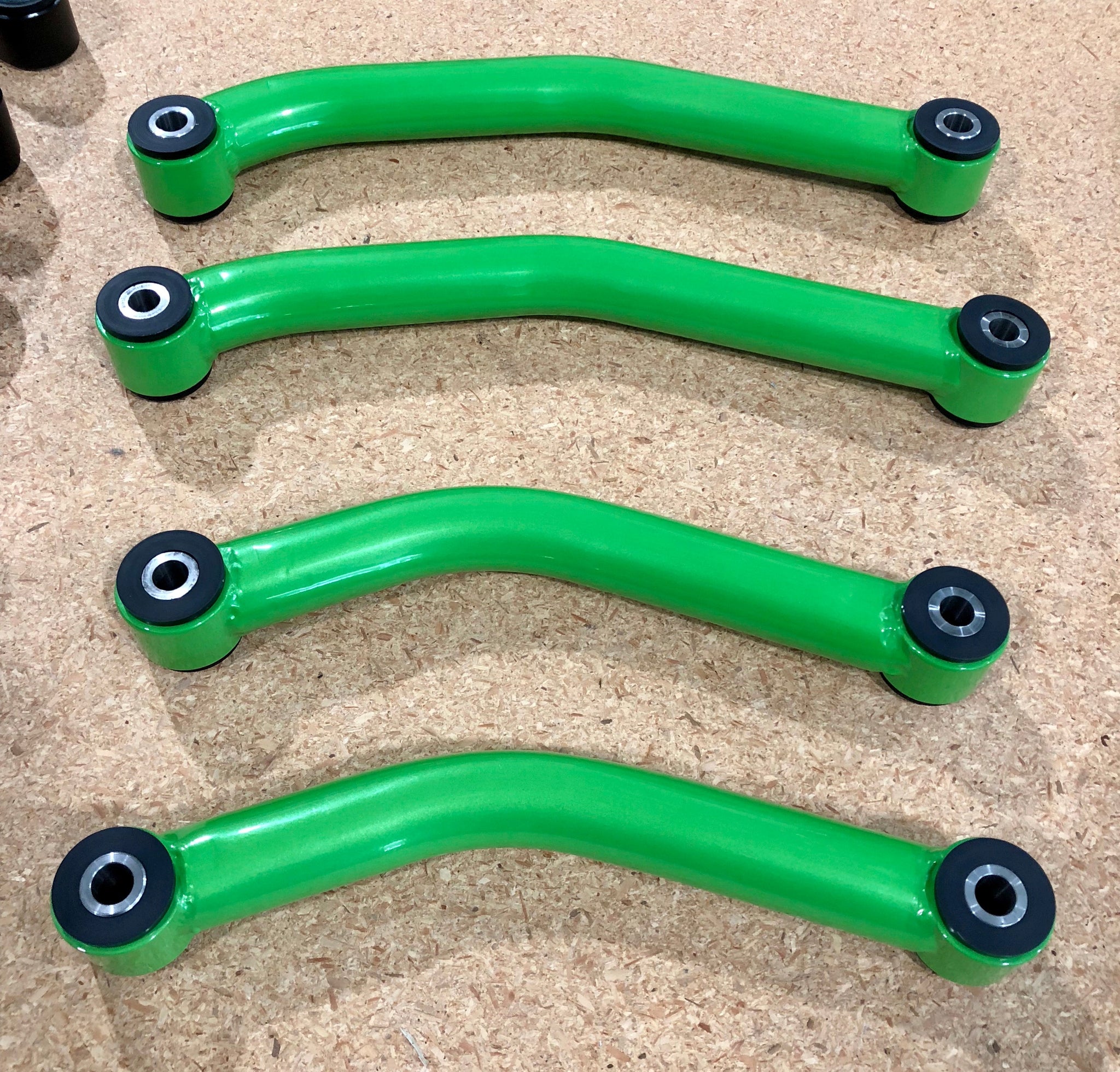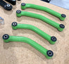 Our fixed tubular rear control arms are made from chromoly and powder coated in a black wrinkle finish. (Manta Green is shown for display purposes.) Made in stock length, but high durometer bushings provide a firmer fitment with less flex and improved handling.