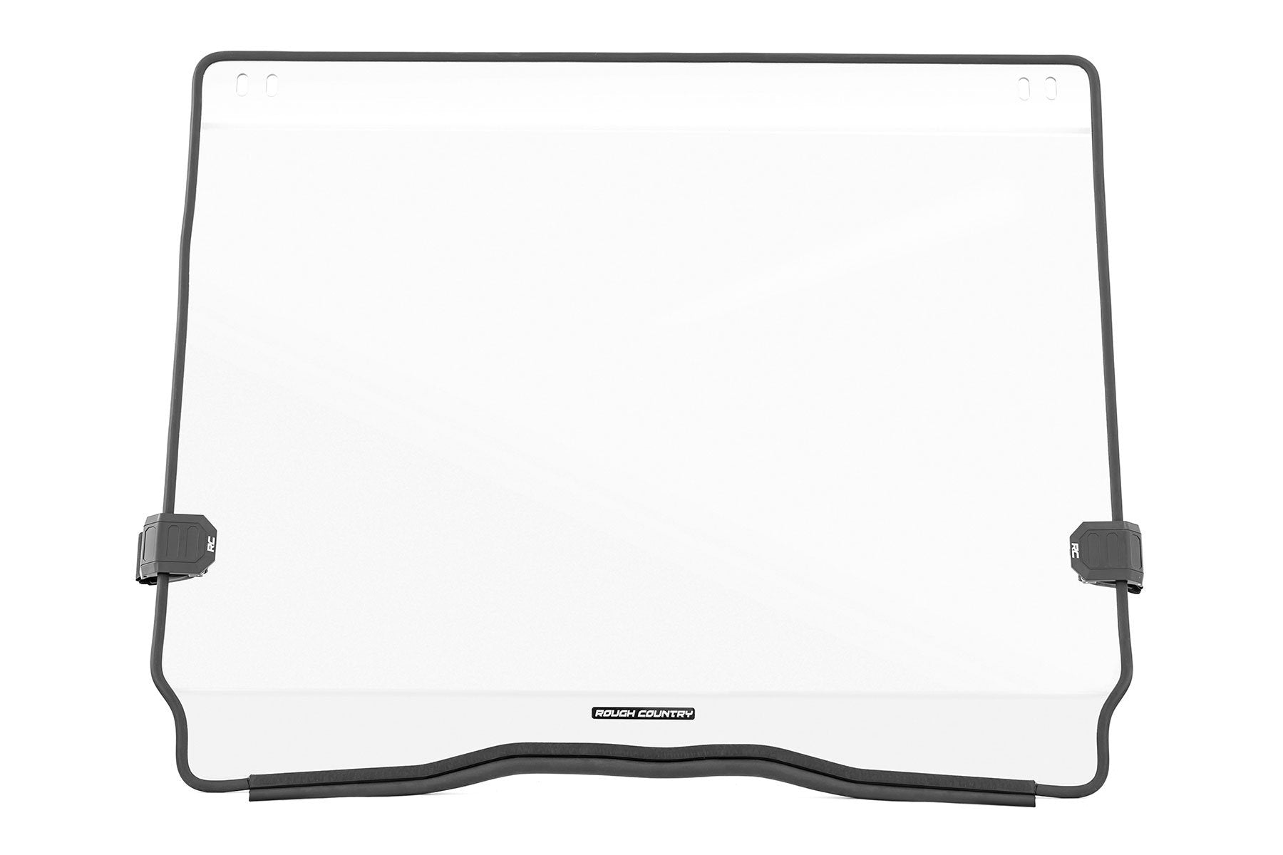 Added Protection and Comfortability: Protect the occupants of your Polaris RZR Pro/Turbo R from off-road hazards such as rocks, branches, and other debris with Rough Country's Scratch-Resistant Windshields. UTV Windshields offer a clear visual of the trail ahead and allow for a much more comfortable outing!High-Quality Polycarbonate Construction:Rough Country UTV windshields are constructed from thick polycarbonate material that is precision cut for a perfect fit. The polycarbonate material provides an ideal combination of clarity, flexibility, durability that outperforms glass, acrylic, and other windshield materials.Durable Scratch and UV Resistance. Each windshield is not only constructed from thick polycarbonate material but enhanced by a secondary AR2 hard-coating process. This process completely coats the windshield with a hardened, scratch-resistant barrier. This treatment also provides the additional benefit of UV protection.Easy Installation:With a simple strap-on installation process, installing a Rough Country windshield couldn't be easier. Within 15-30 minutes, you can be ready to hit the trails.Limited-Lifetime Replacement Warranty: Rough Country's Scratch-Resistant Windshields are backed with a limited lifetime replacement warranty towards manufacturer defects. As such, the product is protected from structural and workmanship damage after the date of purchase. With our industry-leading warranty give yourself peace of mind when using Rough Country's Suspension products!