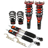 The Godspeed Project MAXX coilovers are for the tuners that want a track oriented setup that also provides daily commute comfort. With 40 levels of damping valve adjustment, you can easily adjust from stiff to soft simply by twisting the knob. Featuring mono-tube design with large capacity 52 mm dia. JIS seamless carbon steel shock body filled with IP F.A. 5W damper oil with properly valved 44 mm internal pistons to endurance competitiveness on a track course or daily spirited driving on public road. Cold wound springs are made from high tensile SAE9252 steel to ensure durability. Vehicle ride heights are adjusted with lower brackets to offer maximum shock travel in order to provide comfort compared to lowering springs alone. Mostly billet aluminum hardware accessories are used for its weight saving property in order to reduced overall weight of the coil-over system yet remain durable. All parts are replaceable and most importantly shock absorbers can be rebuild for customization or simply purchase replacement cartridge without spending too much for complete new coil-over system. You will experience quicker response times, improved bump absorption and increase grip to increase the safety when pushing your car to the limit!Improved Springs Rate To Help Ride Handling And Response