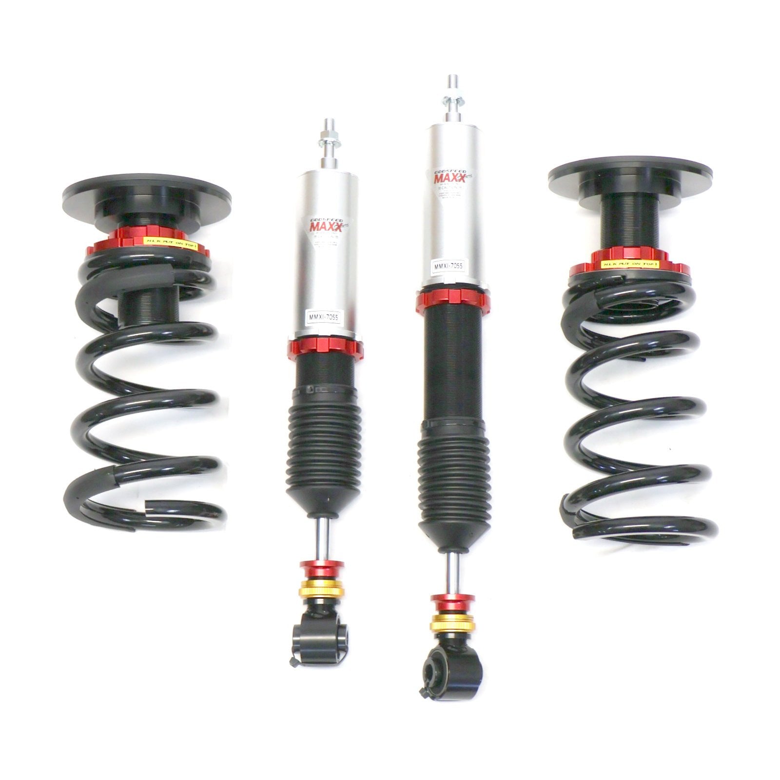 Godspeed Project's MAXX Sports line is engineered to be a more track-oriented coil-over system. Utilized "Inverted" mono-tube shocks to replace where MacPherson struts are used for better rigidity. All mono-tube shocks are finished with anti-corrosion coating and special valving that allows 20-level adjustments to control the rebound damping force. Pillow ball top mounts on four corners provide a far more precise feel from the suspension and steering. High-rigidity steel coil springs provide more control and quick steering to improve the vehicle's overall handling. Aluminum hardware is used where applicable to reduce overall weight.