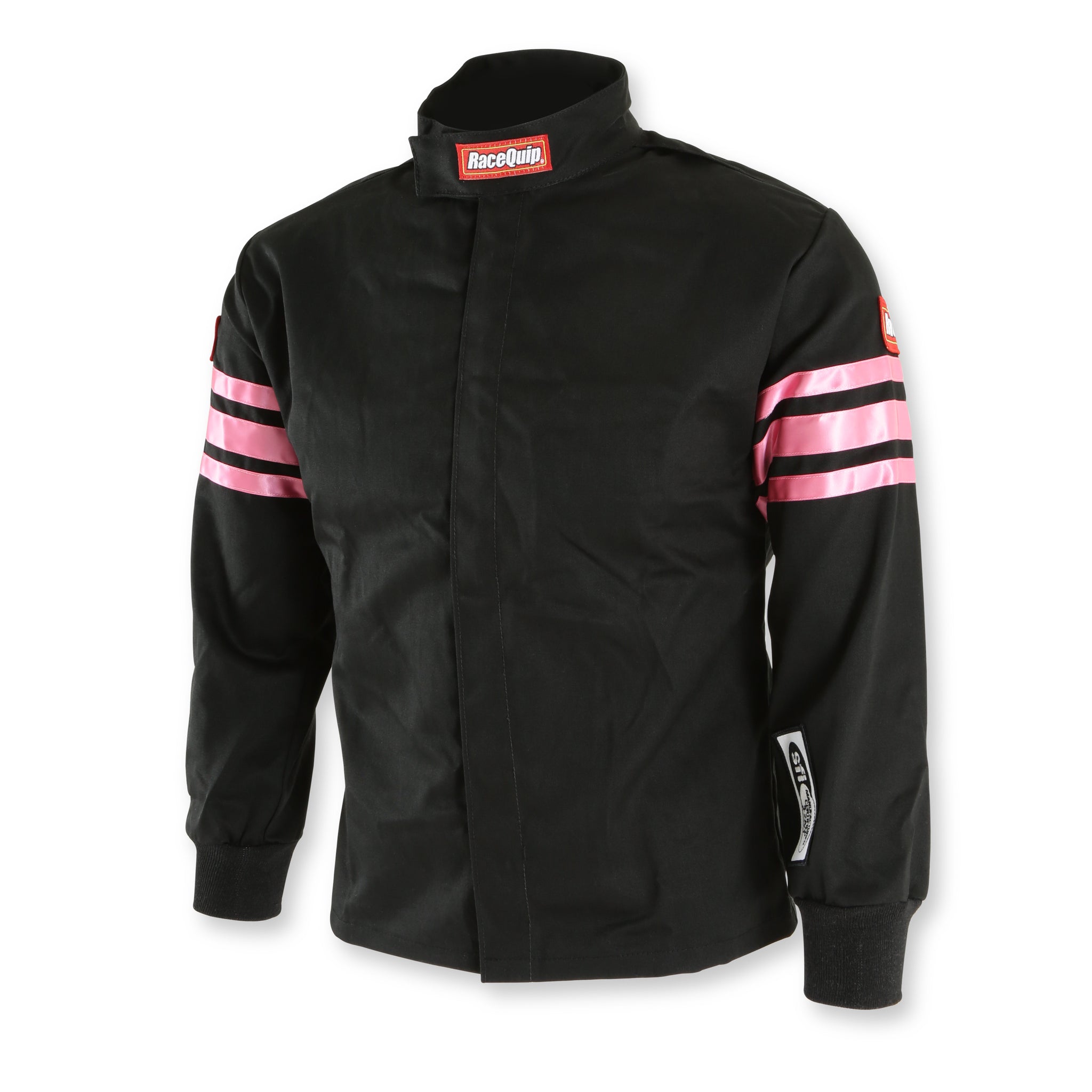 The RaceQuip Youth single-layer SFI-1 racing jacket is made from Pyrovatex® FRC material. Note that sometimes these suits are referred to as "fireproof" racecar driver's jackets, but actually all auto racing safety gear is "fire retardant". Pyrovatex® offers the maximum combination of overall flame and heat protection, durability and comfort for the price. This fire-retardant cotton based (FRC) material is used because it retains the softness and breathability of cotton and will wick away moisture from the skin. Pyrovatex® fabric is gentle and non-irritating to even the most sensitive skin. The treatment process leaves the exterior surface shiny and supple. Since the Pyrovatex® process combines a chemical agent with the raw cotton fibers to create a bond at the molecular level, with proper care, the suit will retain its flame-retardant properties beyond the useful life of the garment. All racing suits are assembled with heavy-duty, multi-needle, over-lock safety stitch machines to provide exceptional seam strength. RaceQuip jackets feature a high-quality heavy duty Nomex® backed brass zipper installed with a double overlap for a more secure front opening.
