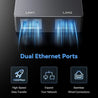 Dual Gigabit Ports: Adds two 10/100/1000Mbps Gigabit Ethernet ports for simultaneous wired connections.