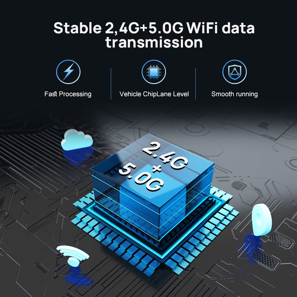[5G Transmission, Quad-core Low-power Chip]The wireless carplay adapter is equipped with 2.4G/5G transmission technology and adopts a newly upgraded quad-core low-power chip, which allows you to enjoy a faster and smoother connection, and alleviates the heat problem to the greatest extent from the root cause.
