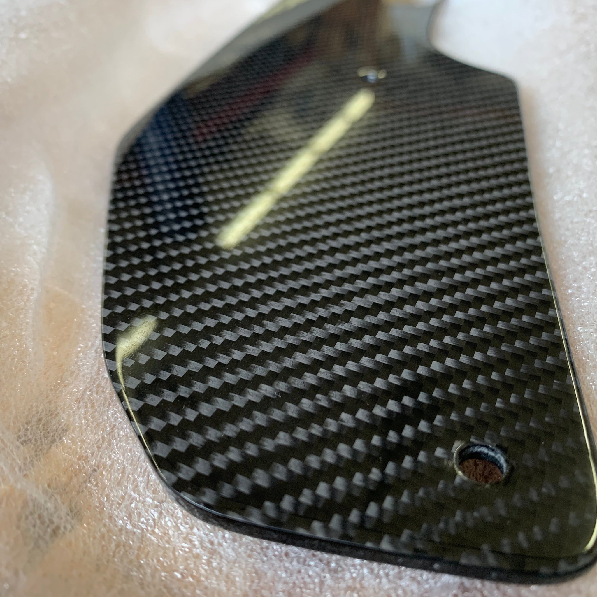 • Carbon Fiber: This product is 100% hand laid carbon fiber and finished off with a machine polish with polished rounded edge.