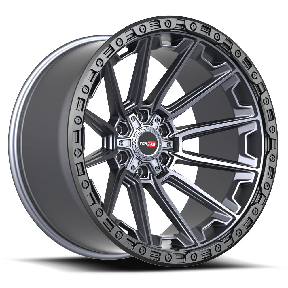Vortek VRT-601 SPARTAN 24x10 6x135 6x139.7 +18 Cb 106.1 Matte Titanium With Black Bead Ring