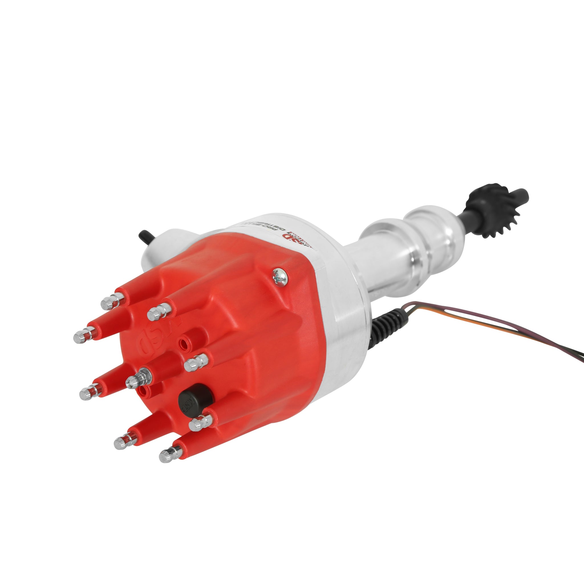 Mounted to the top of this shaft is a fully adjustable mechanical advance assembly. The rate at which the chromoly assembly advances the timing is easily controlled by changing the supplied advance springs and stop bushing for total advance.