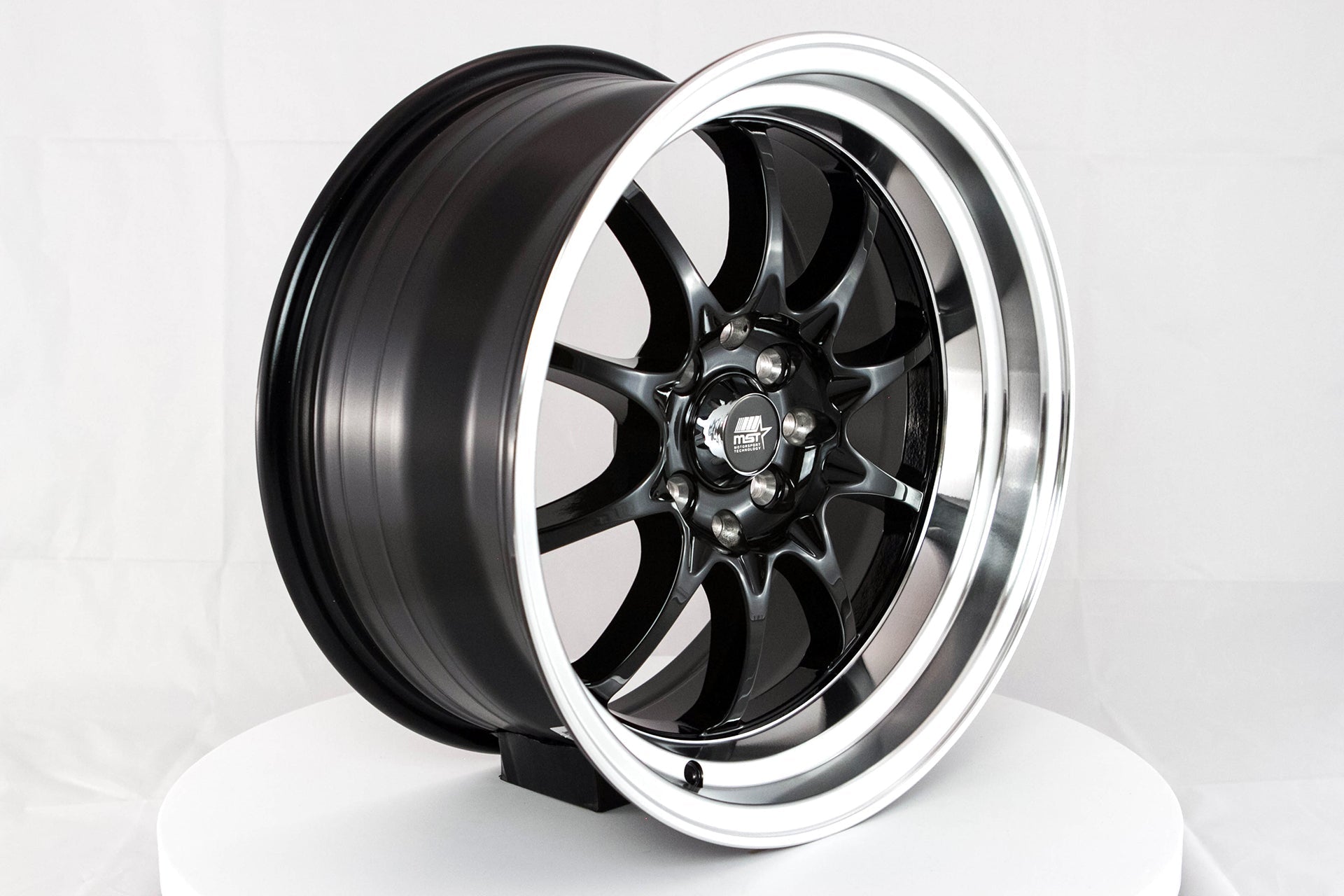4x100/4x114.3 16x8 +15mm MT11 in Black w/ Machined Lip by MST Wheels