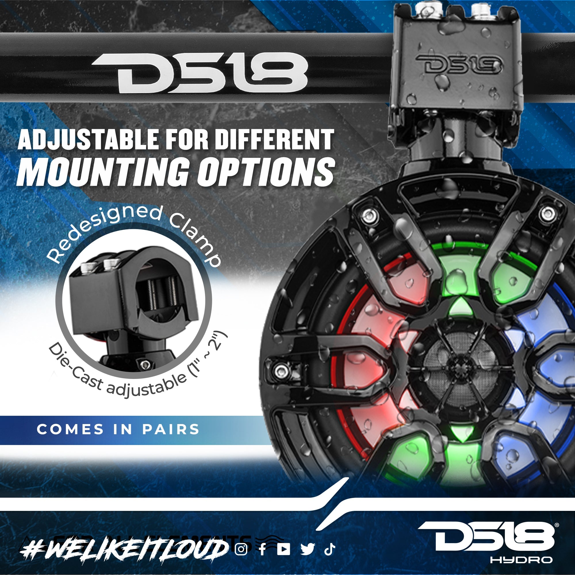 S18 HYDRO NXL-X6TP/BK 6.5" Marine Water Resistant Wakeboard Tower Speakers with Integrated RGB LED Lights 300 Watts - Black