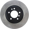 StopTech Slotted Sport Rotors are 1-piece direct replacement brake discs for factory brake systems and stock calipers that look great behind your wheels – and offer significantly improved braking performance. The unique slotting aids with heat and brake dust dispersal; prevents glazing of the pads; adds bite and improves wet and dry braking performance. Built to last; the black e-coating provides protection from corrosion and the high carbon metallurgy (in most applications) offers quieter operation; better crack resistance and increased performance.